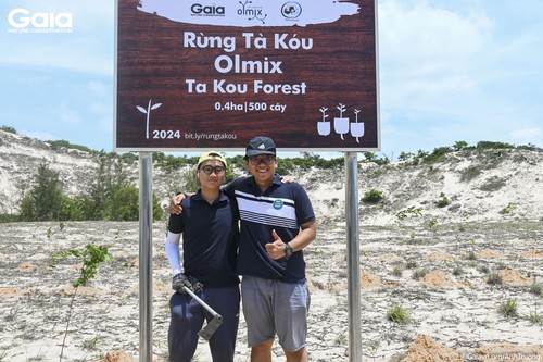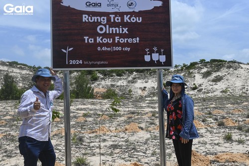 Bà Huyền Đỗ cùng lãnh đạo Olmix và Cán bộ lâm nghiệp trồng cây đầu tiên