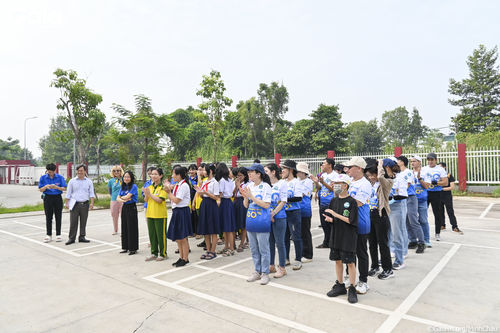 Chụp ảnh tập thể tại trường THCS Tô Ngọc Vân