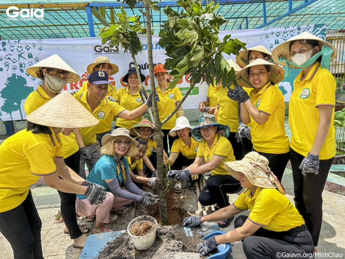 Gaia hướng dẫn các kĩ thuật trồng cây đến các giáo viên tại trường Mầm non Vàng Anh