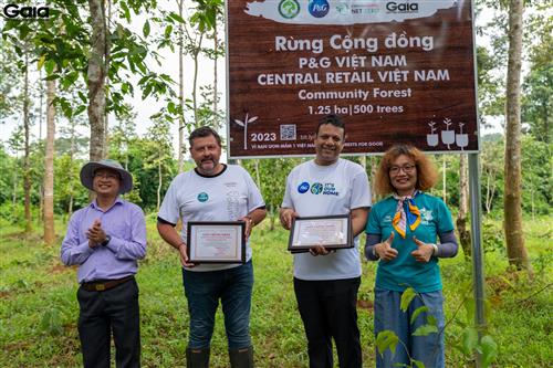 i diện Gaia trao giấy chứng nhận góp rừng cho đại diện P&G và Central Retail Vietnam
