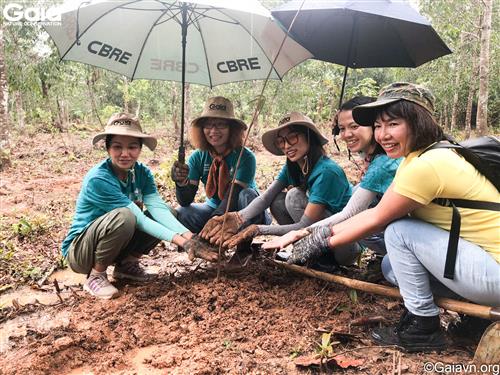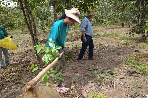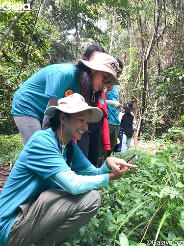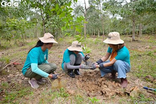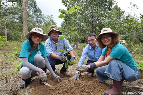 H’Hen Niê, Ngô Bảo Ngọc, và Bà Huyền Đỗ - Nhà sáng lập & Giám đốc Trung tâm Bảo tồn Thiên nhiên Gaia trồng cây làm thức ăn cho động vật hoang dã.