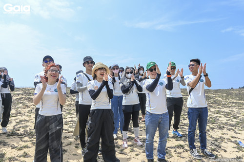 Chụp ảnh tập thể nhân viên Yody tại biển tên rừng Tà Kóu