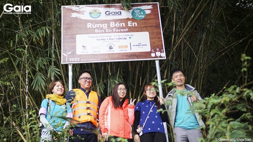 Chụp ảnh tại bảng tên rừng Bến En