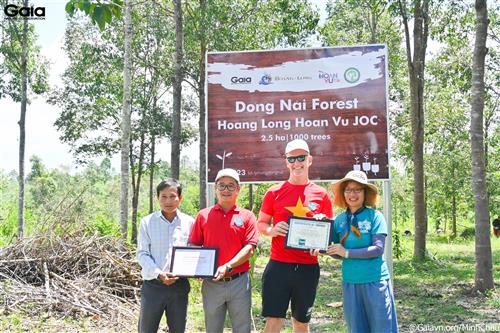 i diện Gaia trao giấy chứng nhận góp rừng cho đại diện HLHV