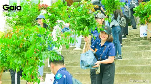 Hào hứng mang cây đến điểm trồng rừng.
