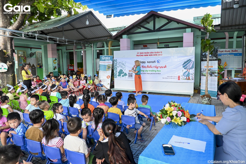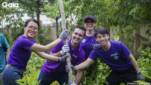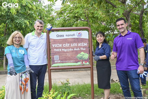 i diện Gaia, Sanofi và Nhà trường chụp hình tại bảng tên