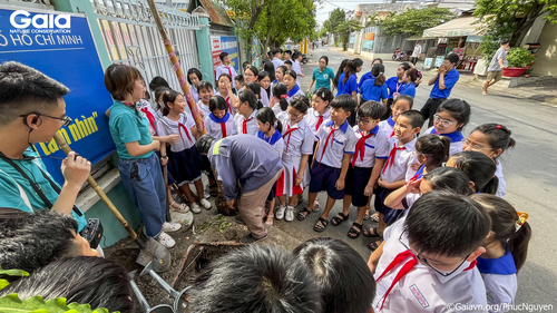 Các bạn học sinh chăm chú lắng nghe hướng dẫn trồng cây