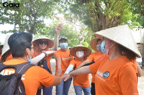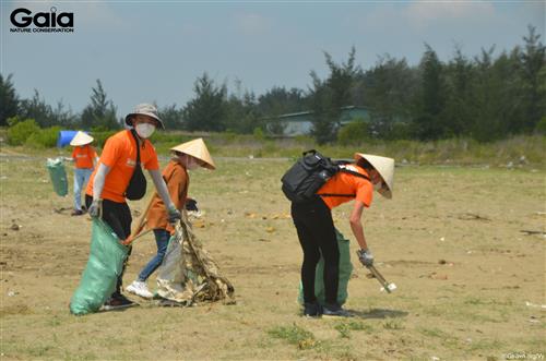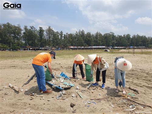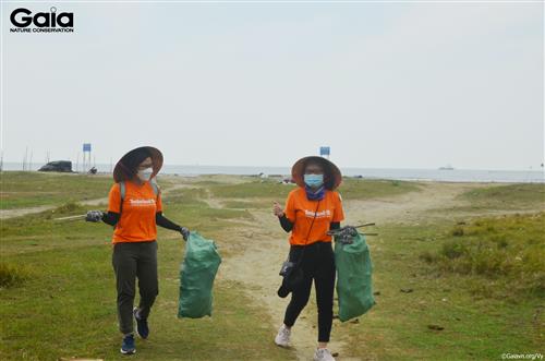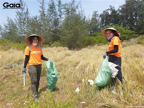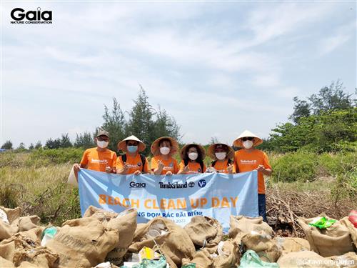 Cán bộ VF vui mừng thành quả nhặt rác tại Biển Cần Giờ.