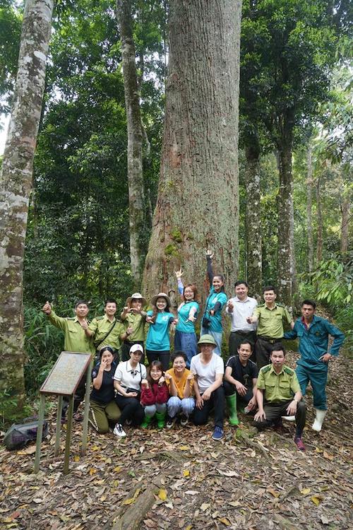 Chụp hình lưu niệm cùng BQL Khu bảo tồn Thiên nhiên Xuân Liên bên cây Pơ mu ngàn năm