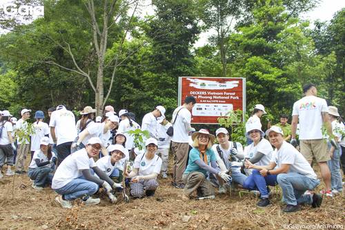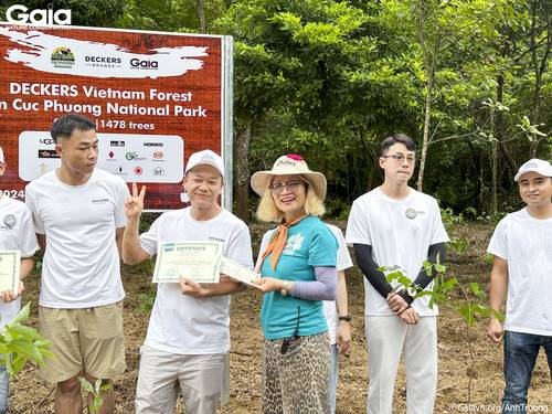 Lãnh đạo Deckers trồng cây đầu tiên cùng cán bộ lâm nghiệp VQG