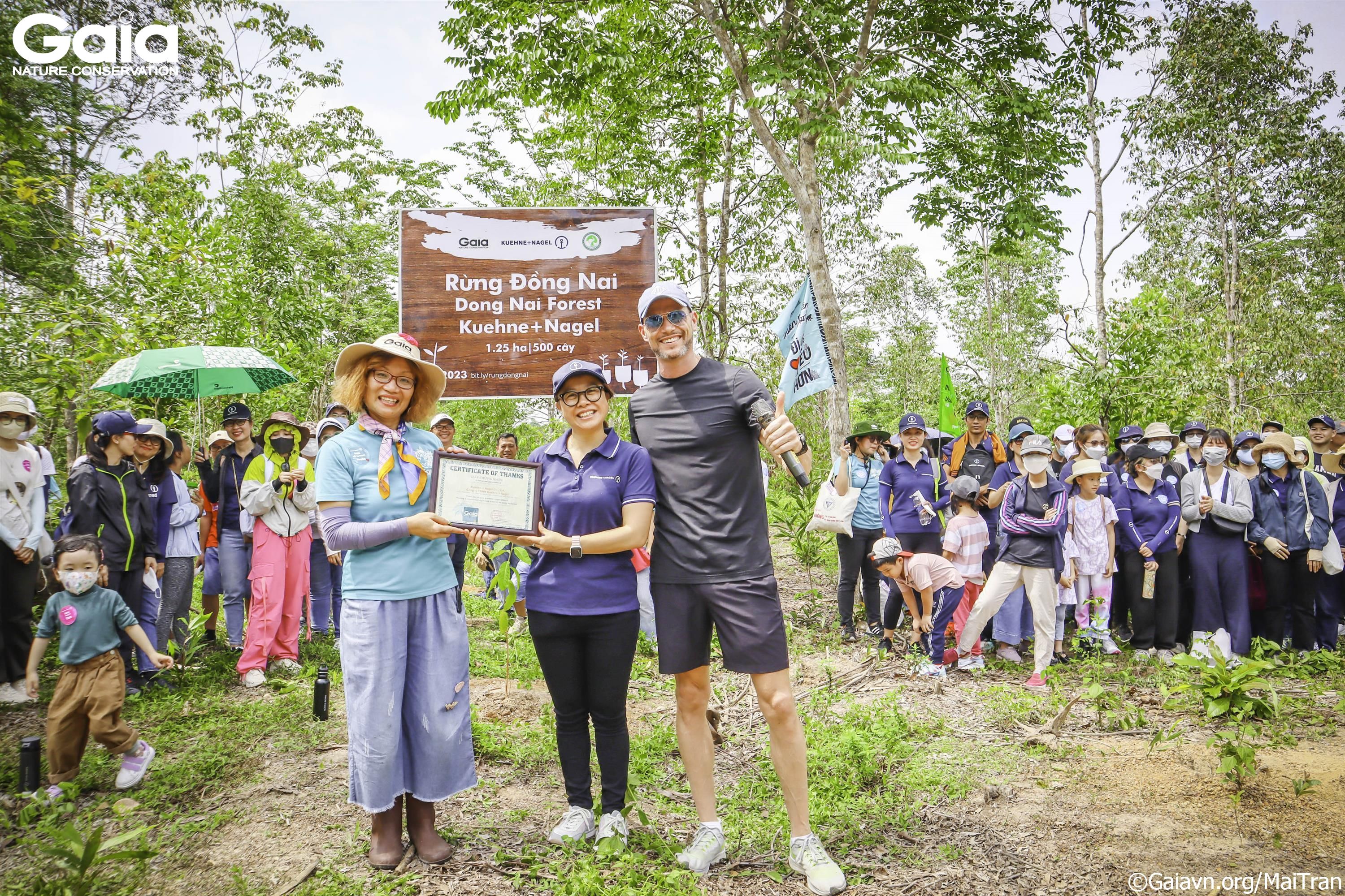 i diện Gaia trao giấy chứng nhận góp rừng cho đại diện Kuehne+Nagel