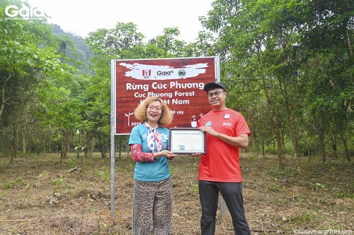 i diện Gaia trao tặng giấy chứng nhận cảm ơn đến KFC