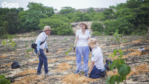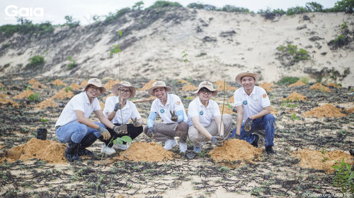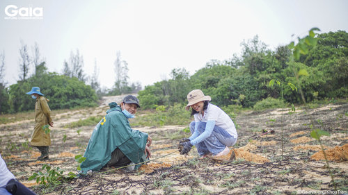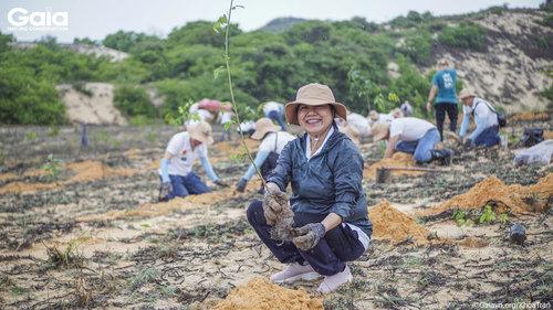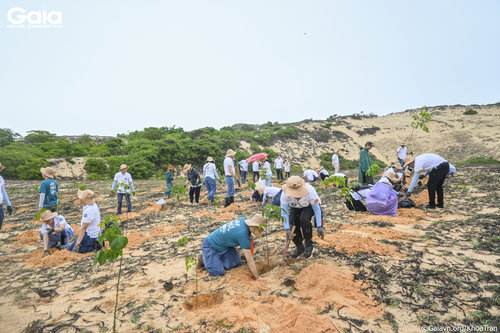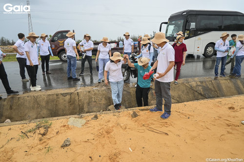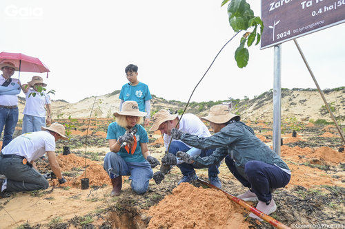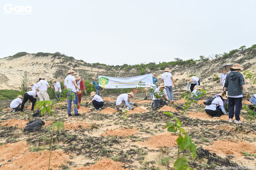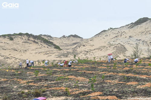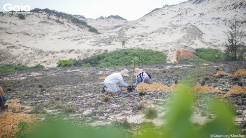 Mọi người quan sát kỹ thuật trồng cây trên đất cát