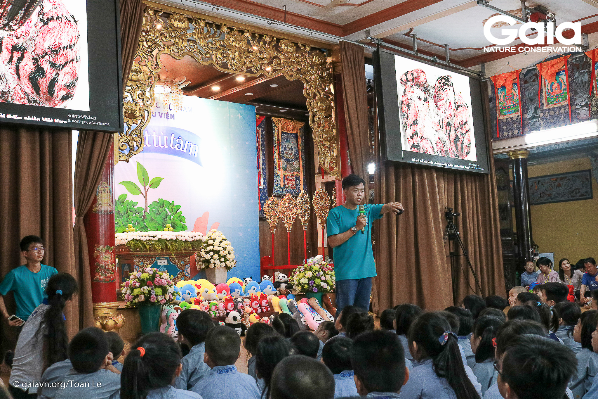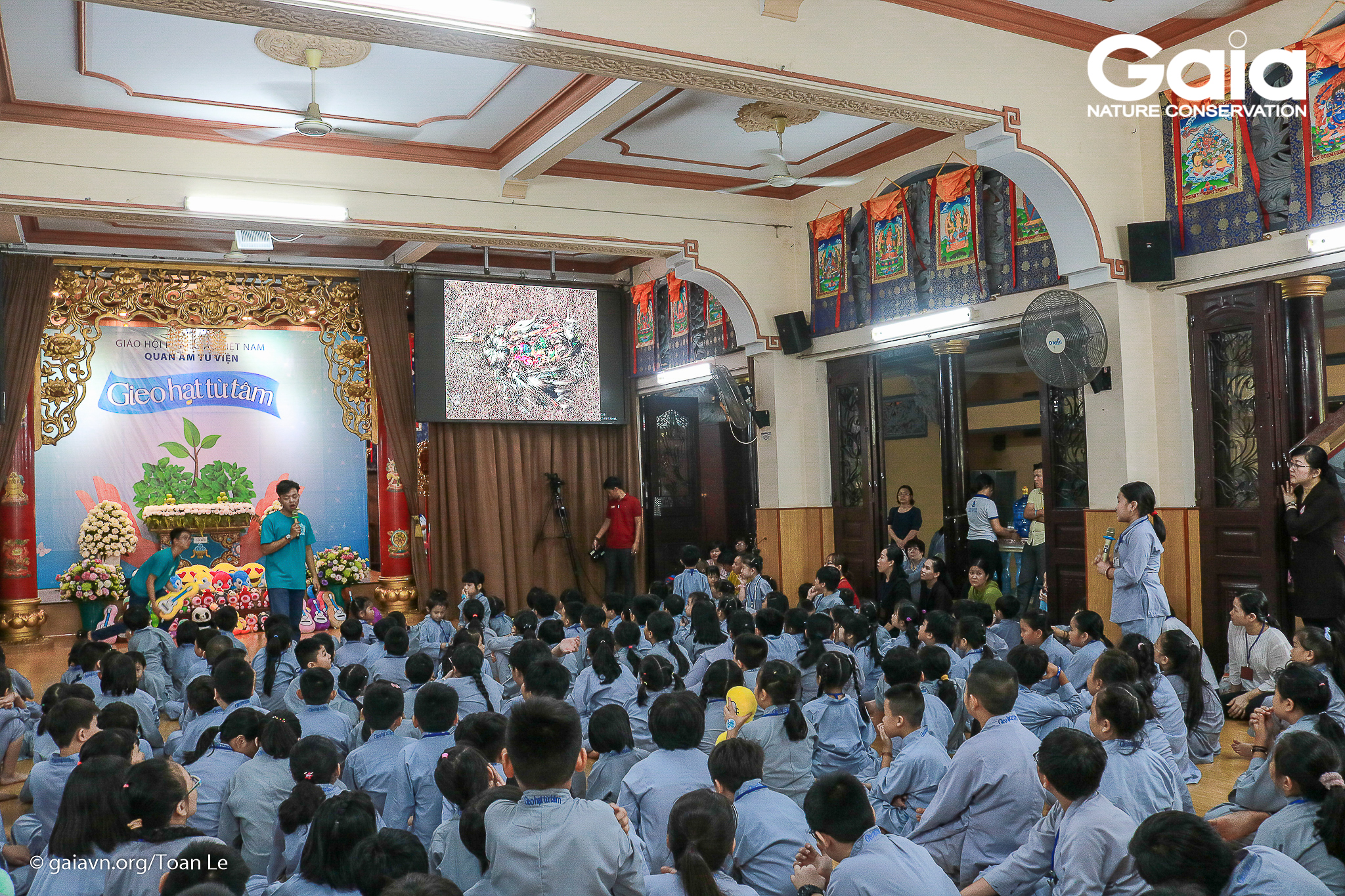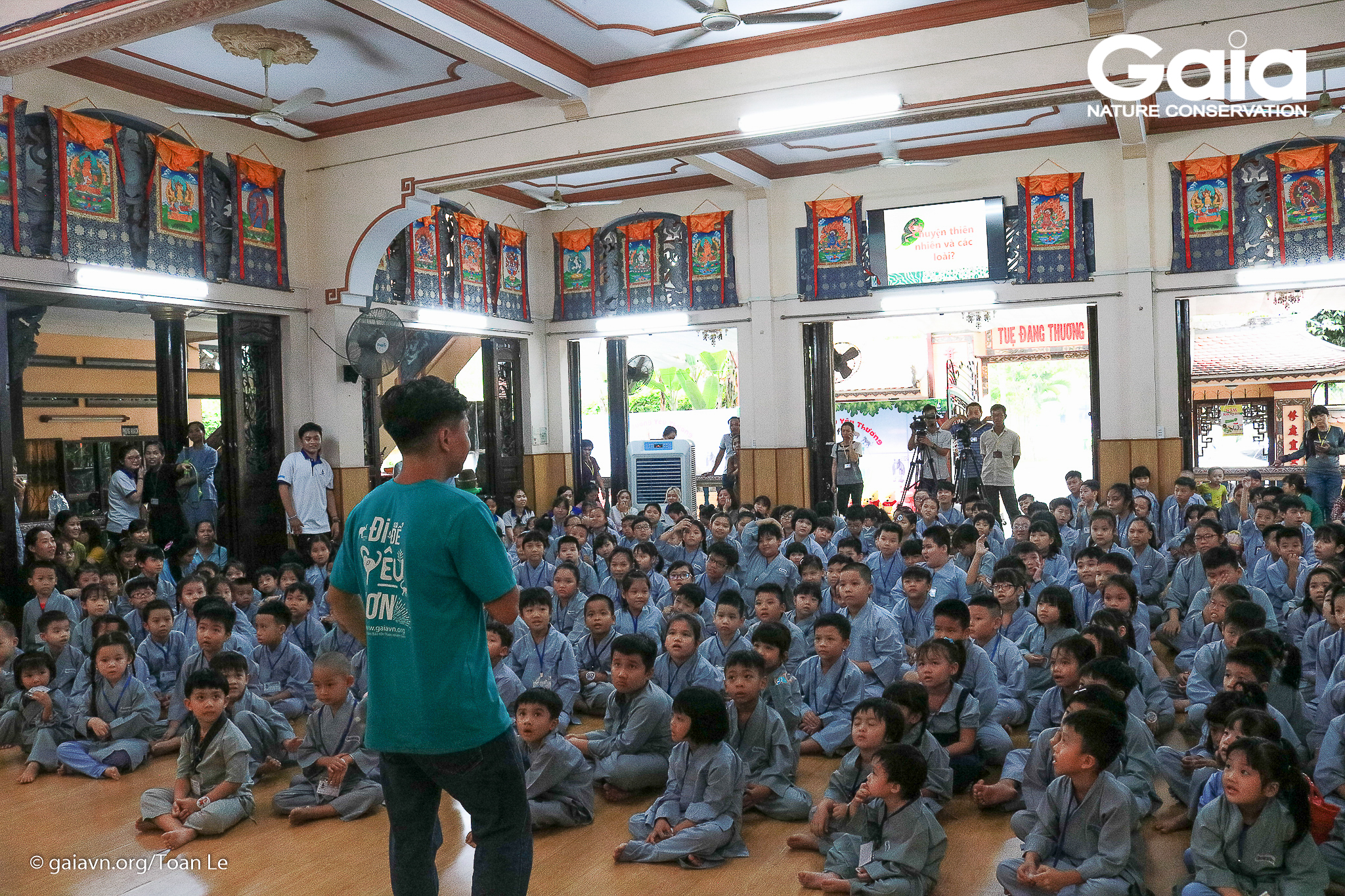 Các phật tử được xem phim về động vật hoang dã
