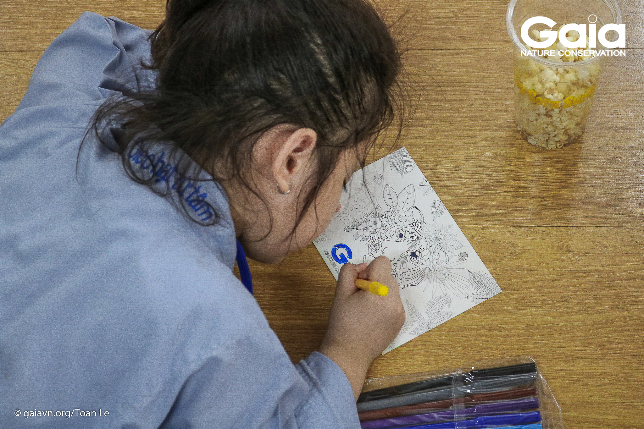 Các bé tỉ mỉ tô màu bưu thiếp