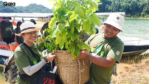Bà Huyền Đỗ trồng cây cùng đại diện KFC