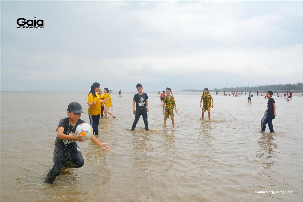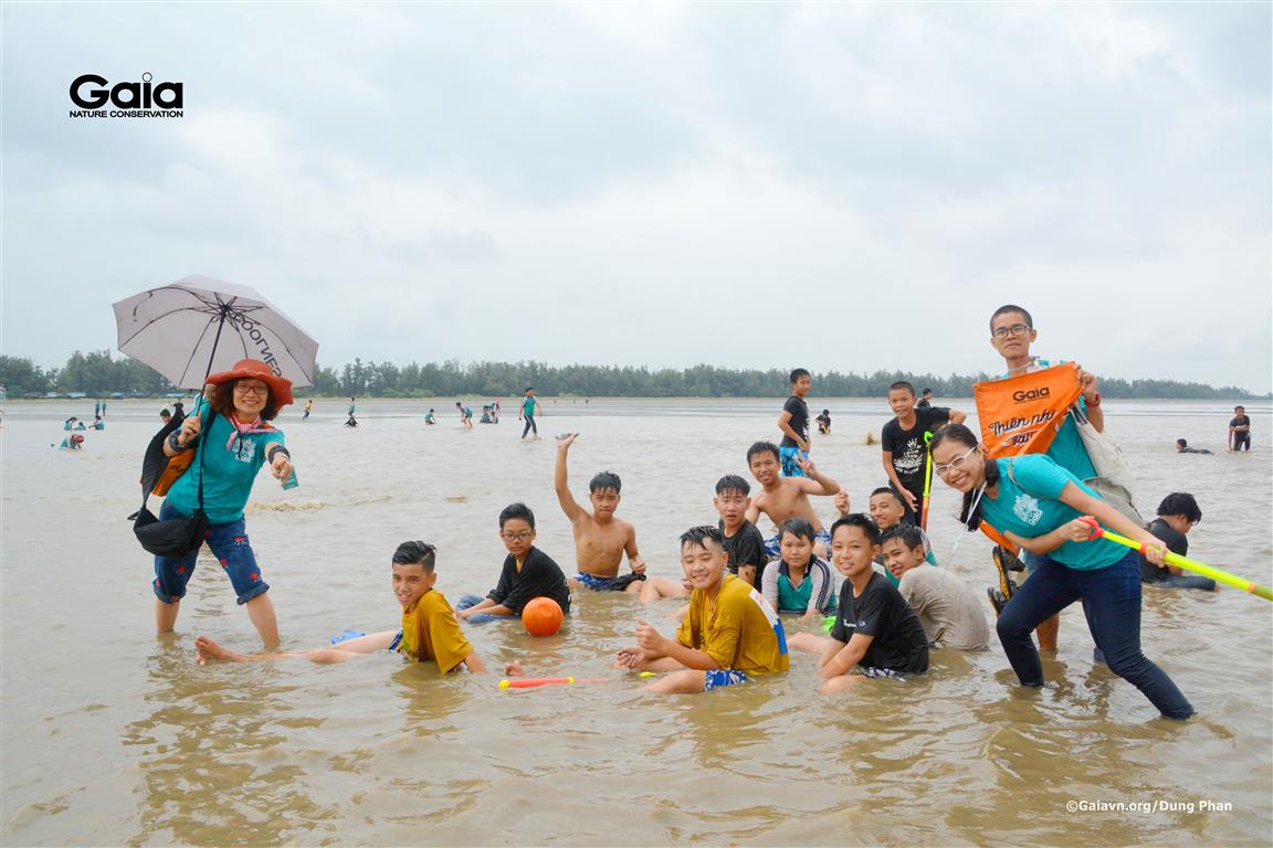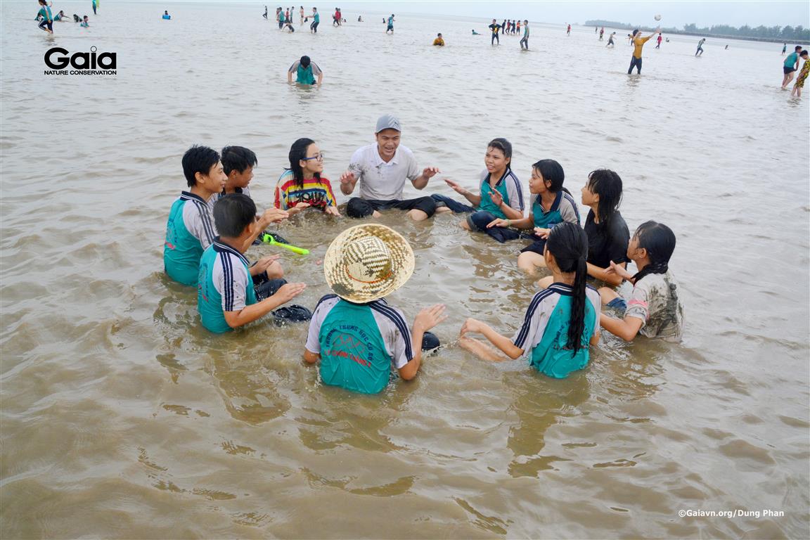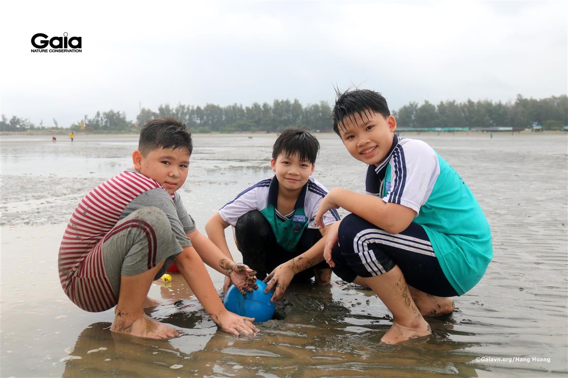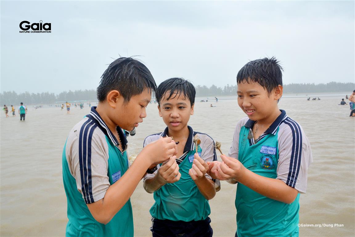 Học sinh vui vẻ khám phá thiên nhiên tại biển.
