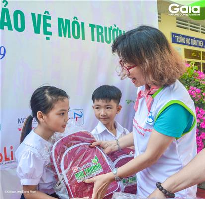 Trao 20 suất học bổng, 100 phần quà cho học sinh có thành tích bảo vệ môi trường tại Trường tiểu học Vĩnh Tế.