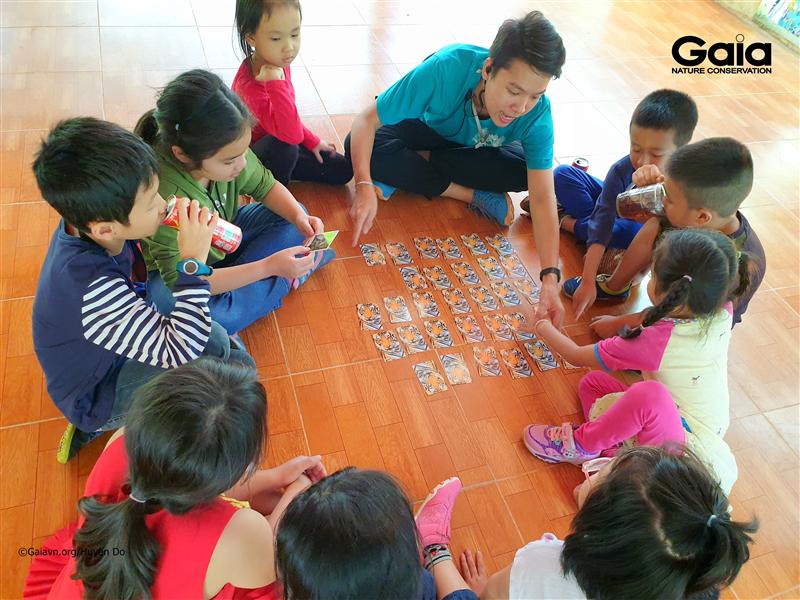 Em nhỏ chơi trò chơi tìm hiểu động vật hoang dã.