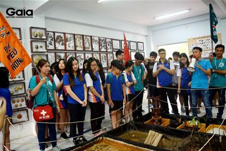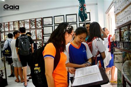 Học sinh tham quan phòng tiêu bản và nghe giới thiệu các mô hình.