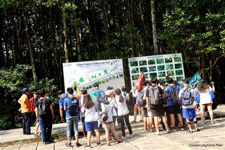 Học sinh thích thú xem các thực vật đặc trưng ở rừng ngập mặn.