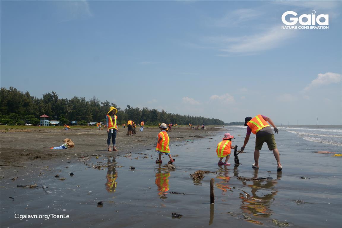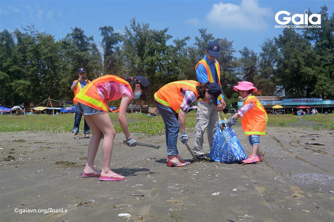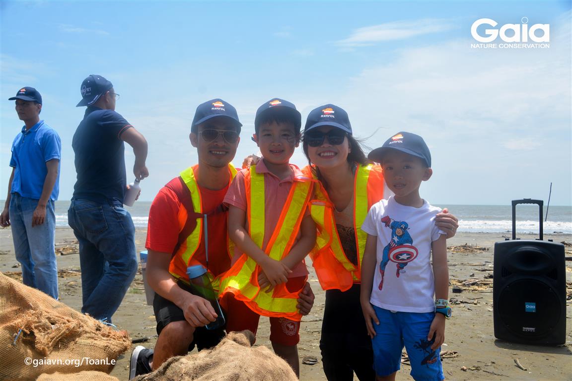 Cả gia đình cùng vui khi đi dọn bãi biển