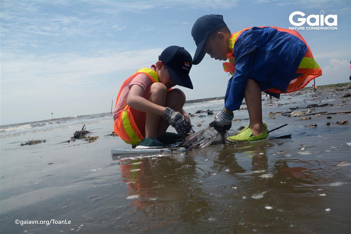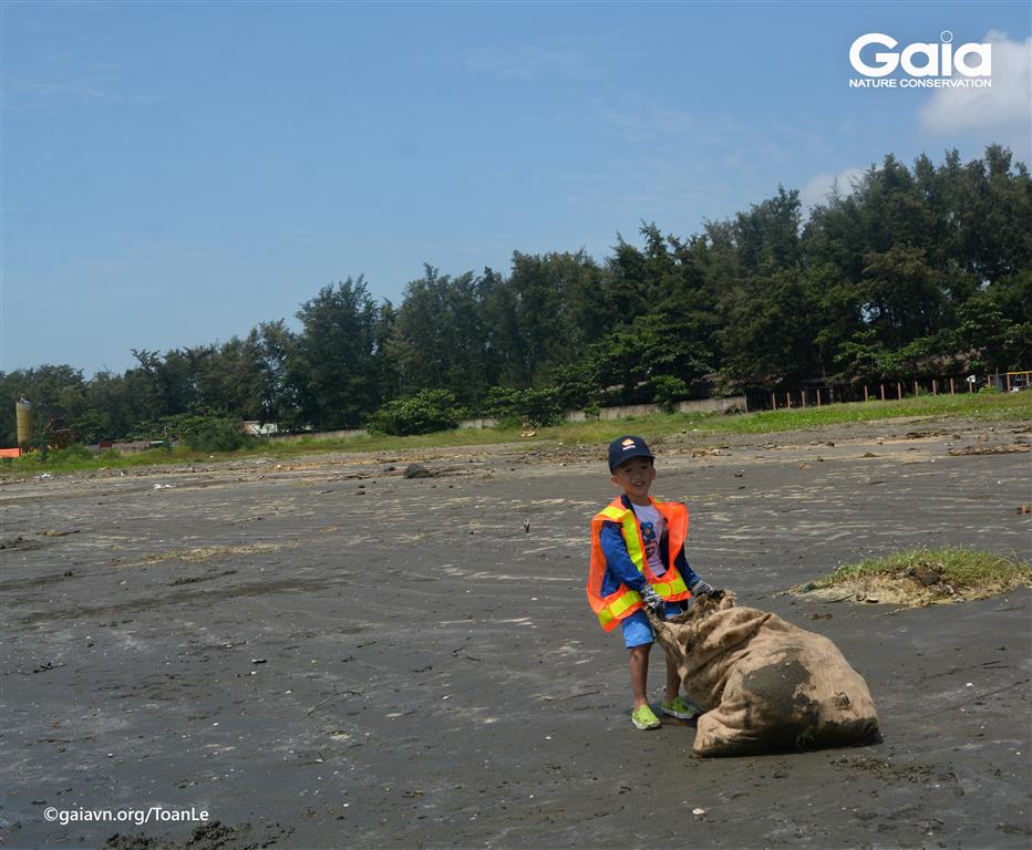 Các bạn nhỏ cũng nhiệt tình gom rác
