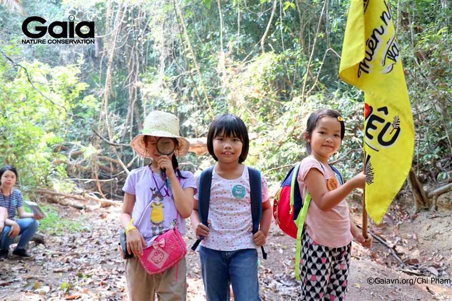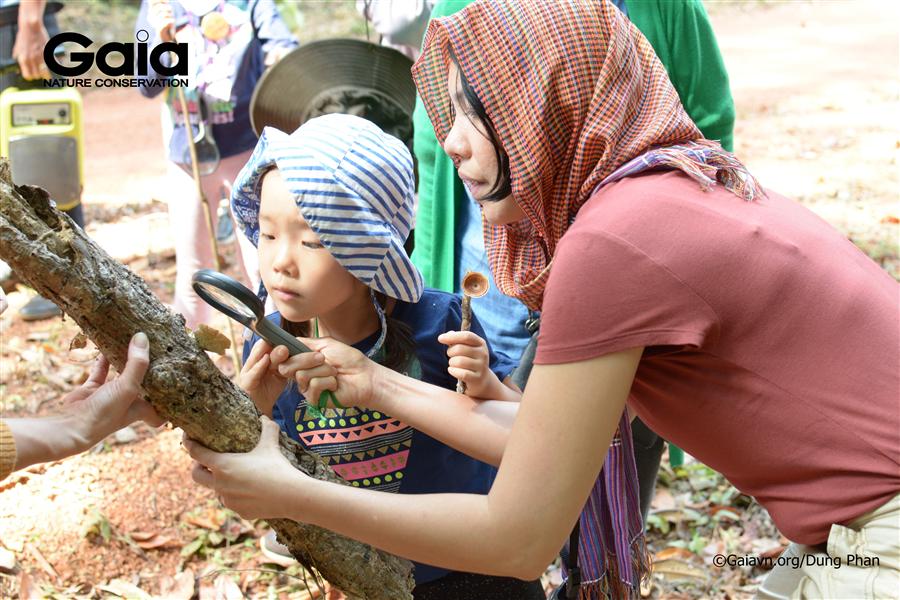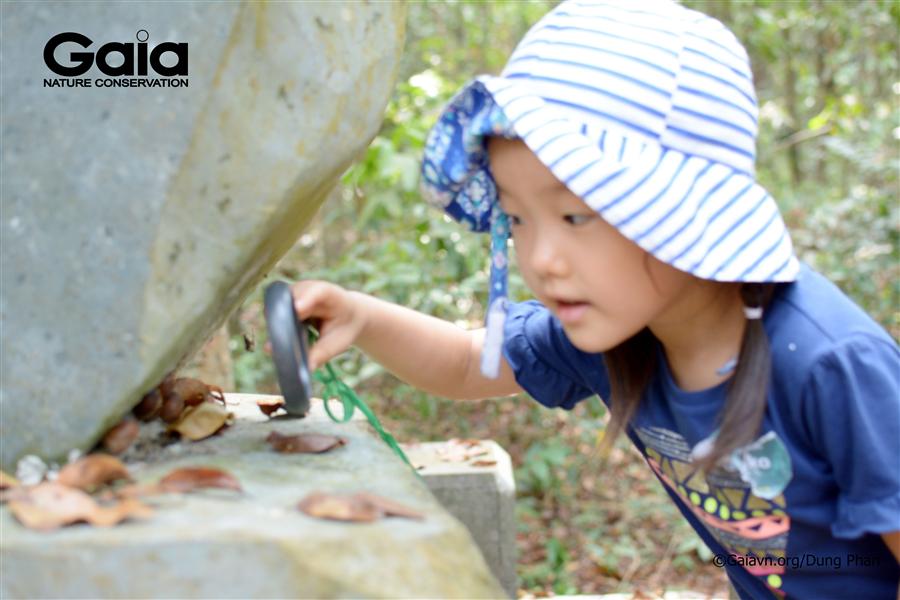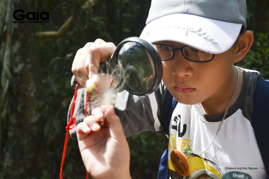 Hào hứng quan sát sinh vật bằng kính lúp.