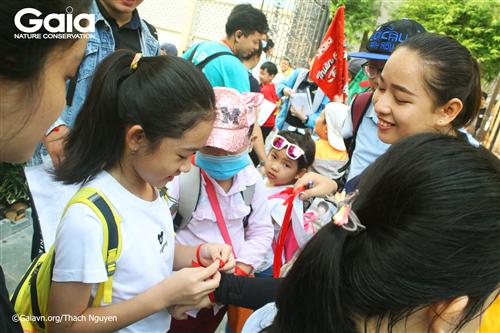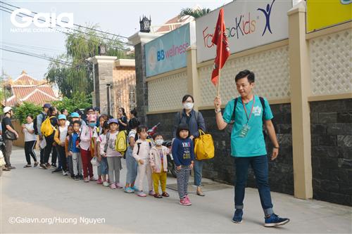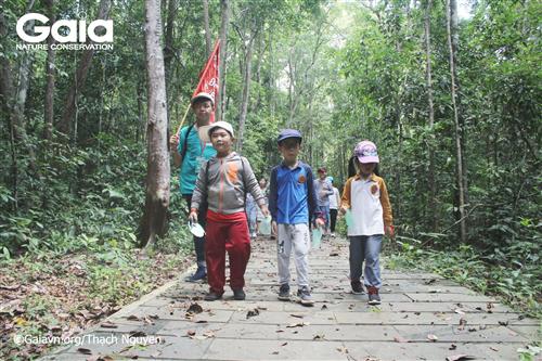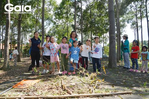 Từ trái qua: Hai em học sinh trường FasTrackids, hiệu trưởng trường Fastrackids và giám đốc trung tâm bảo tồn thiên nhiên Gaia.