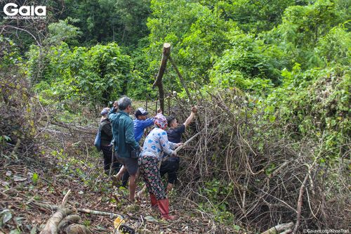 Người dân hỗ trợ nhau phát quang bụi rậm