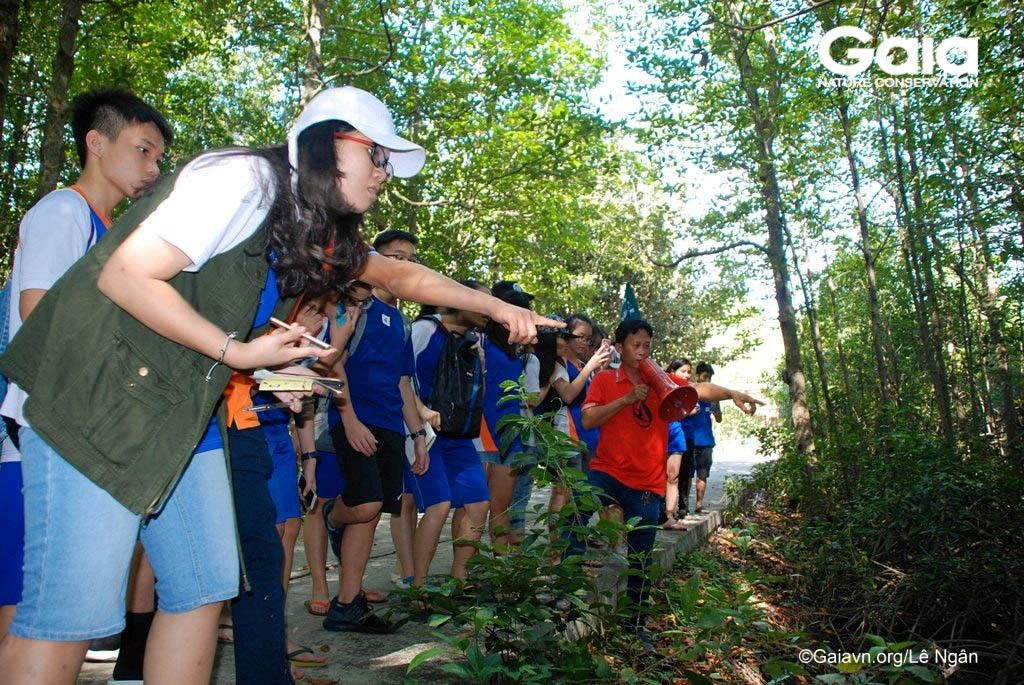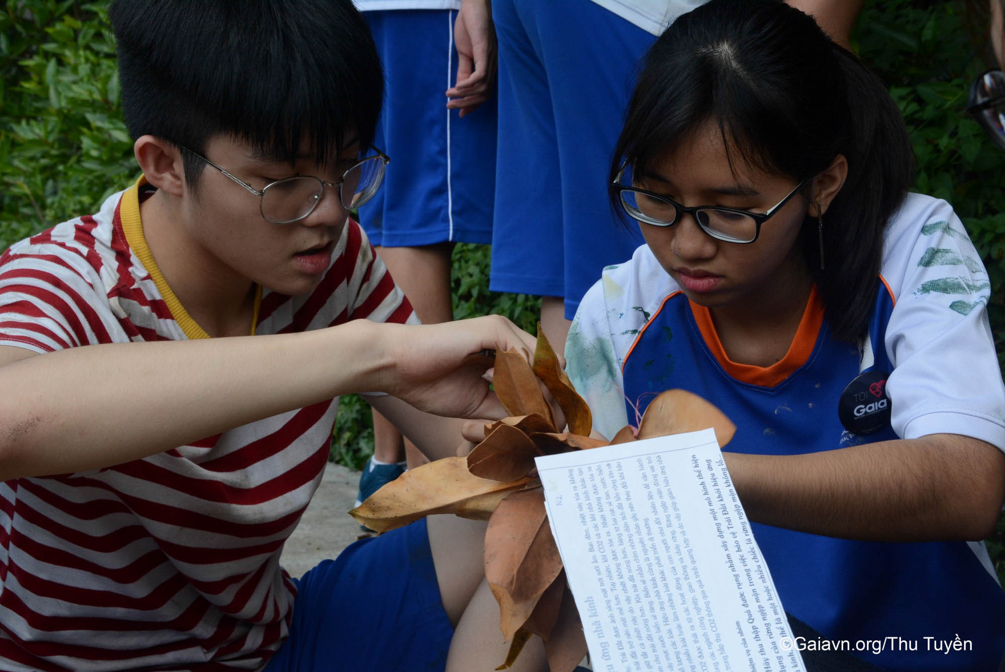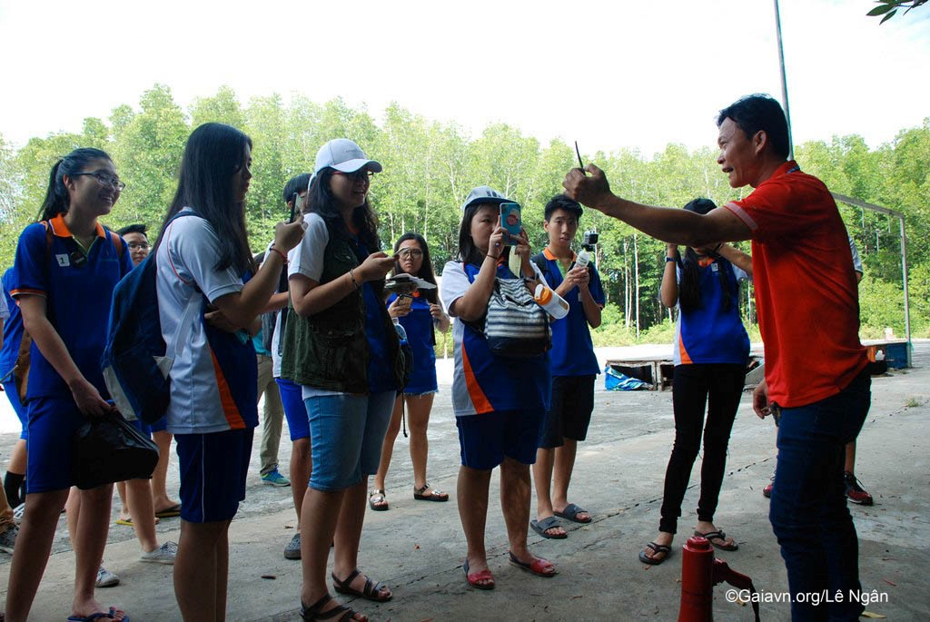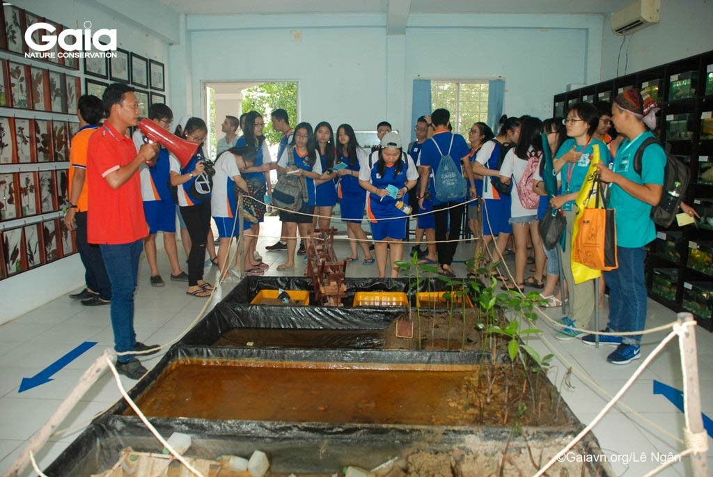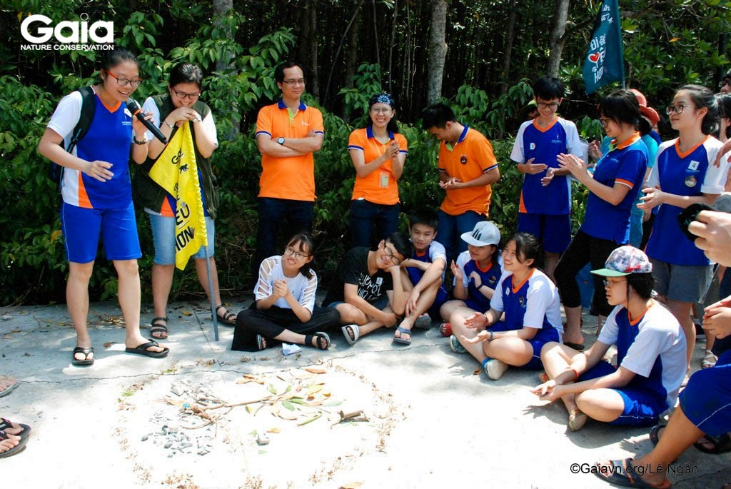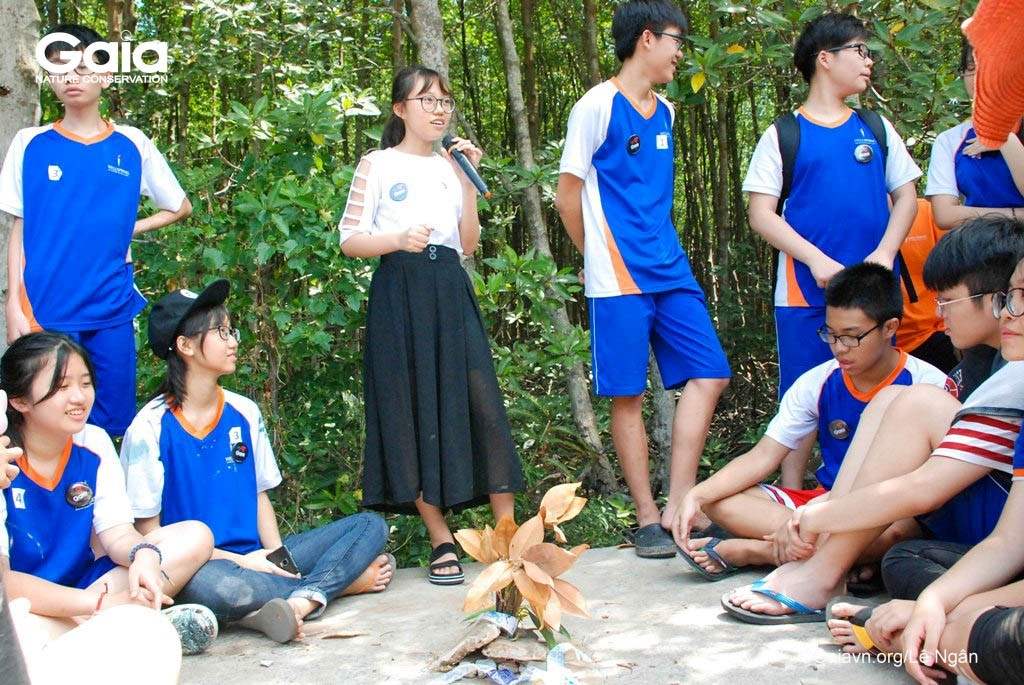 Học sinh thuyết trình mô hình chức năng của rừng ngập mặn.