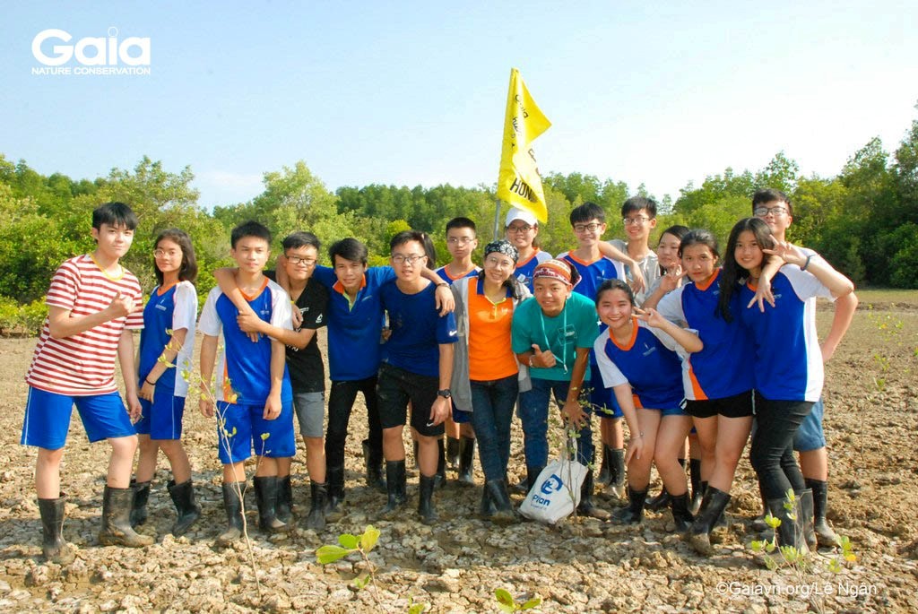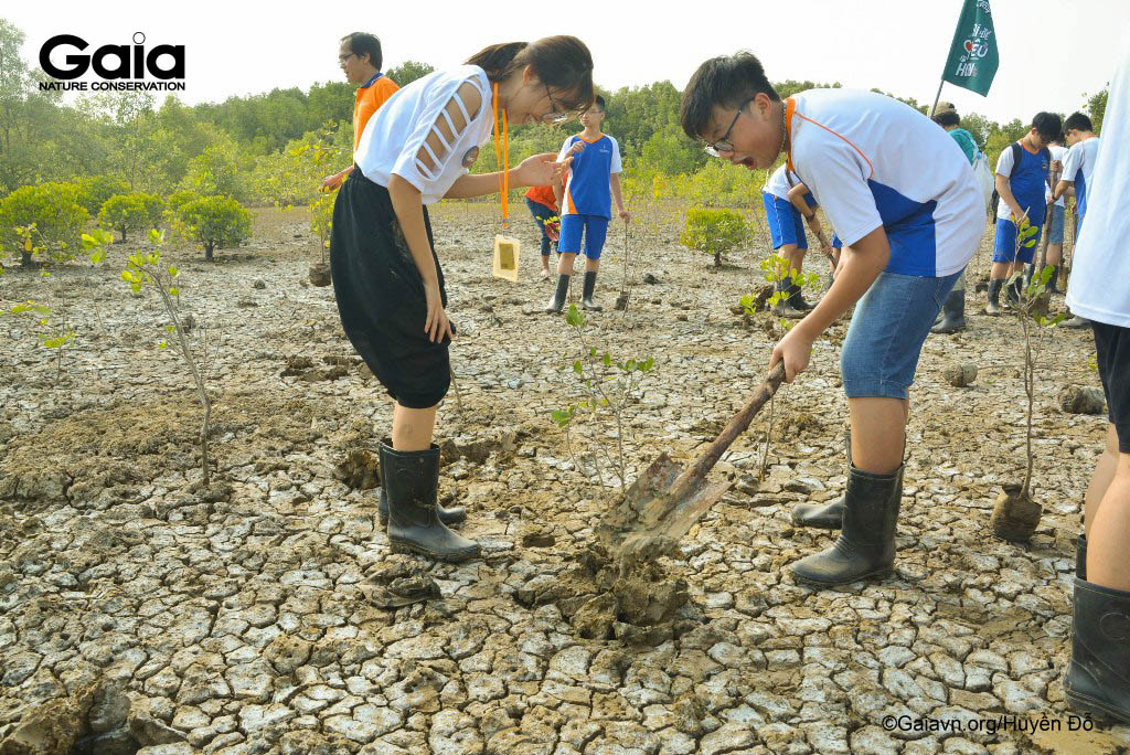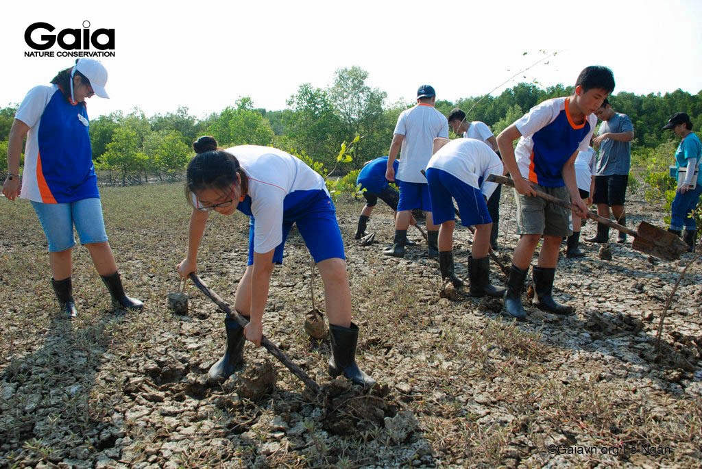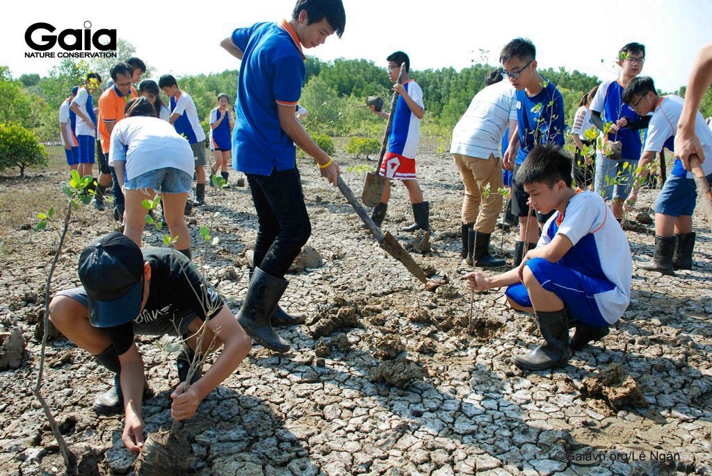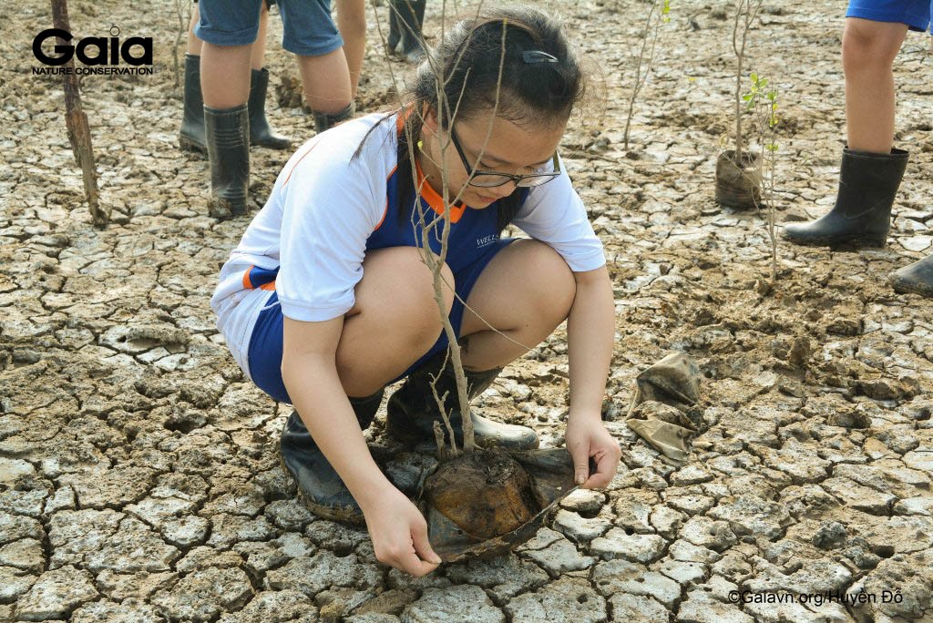 Giáo viên và học sinh trồng cây rừng ngập mặn