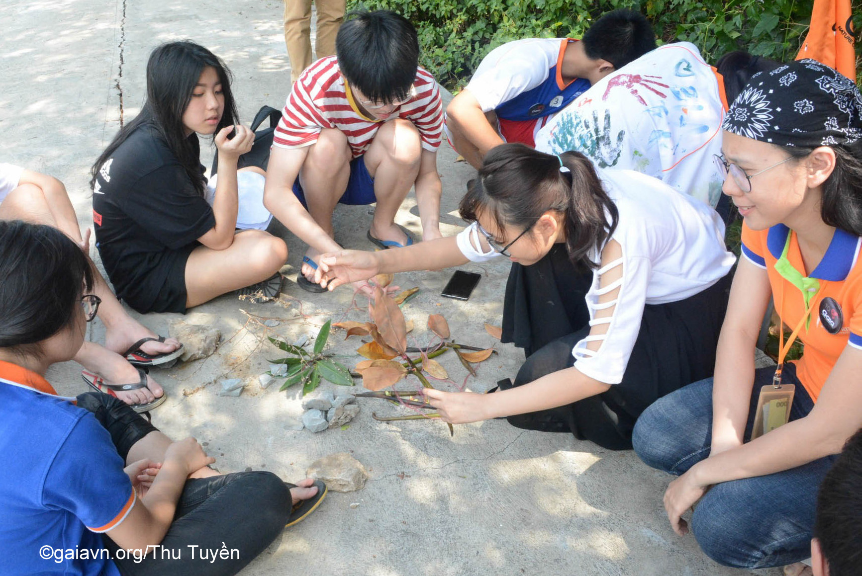 Giáo viên và học sinh thảo luận xây dựng mô hình thể hiện chức năng rừng ngập mặn