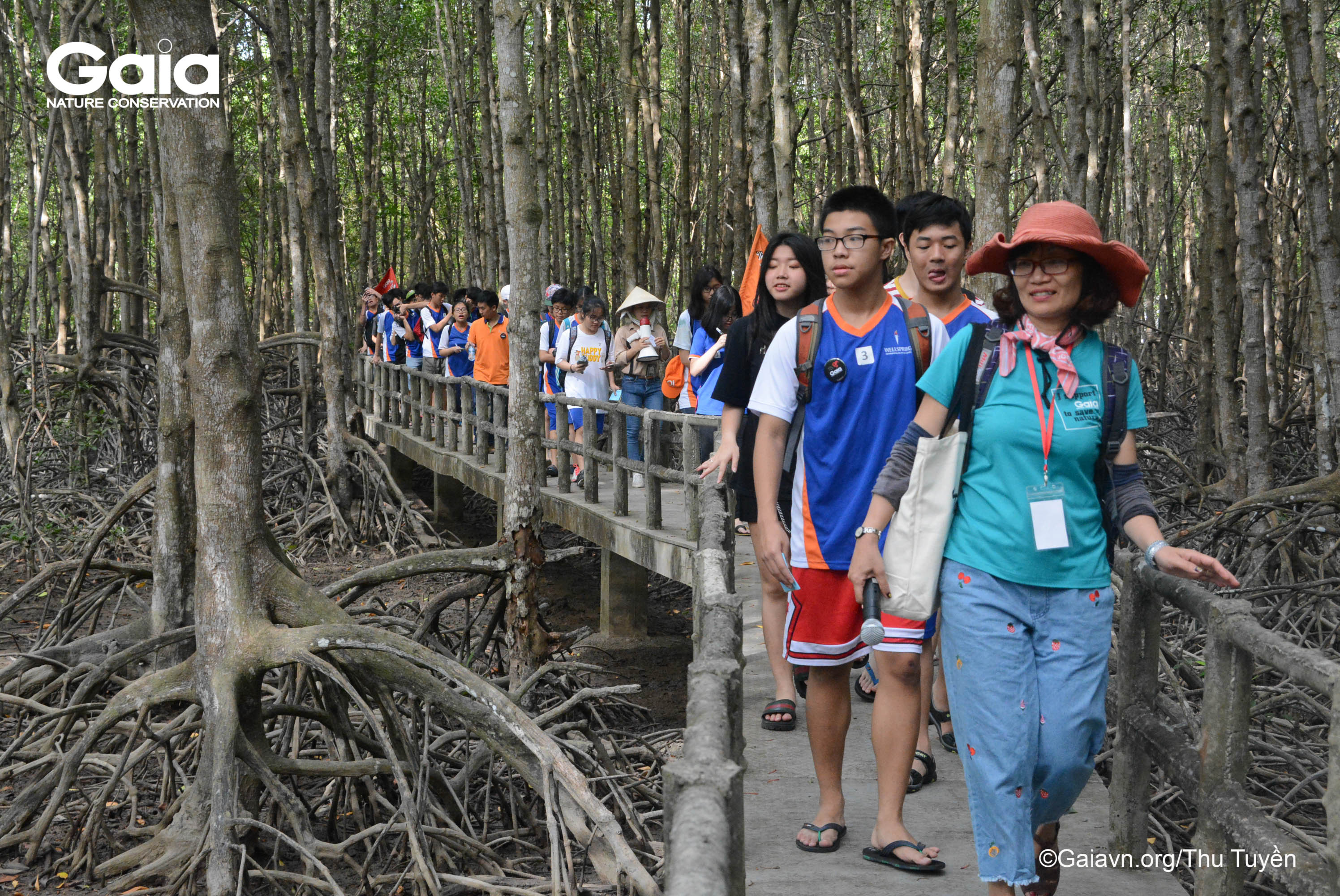 Chụp ảnh trên cây cầu giữa rừng Đước