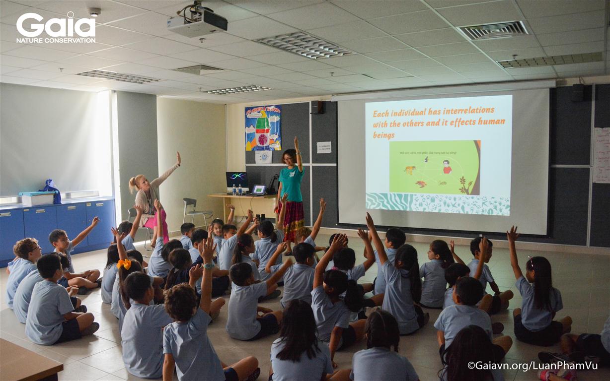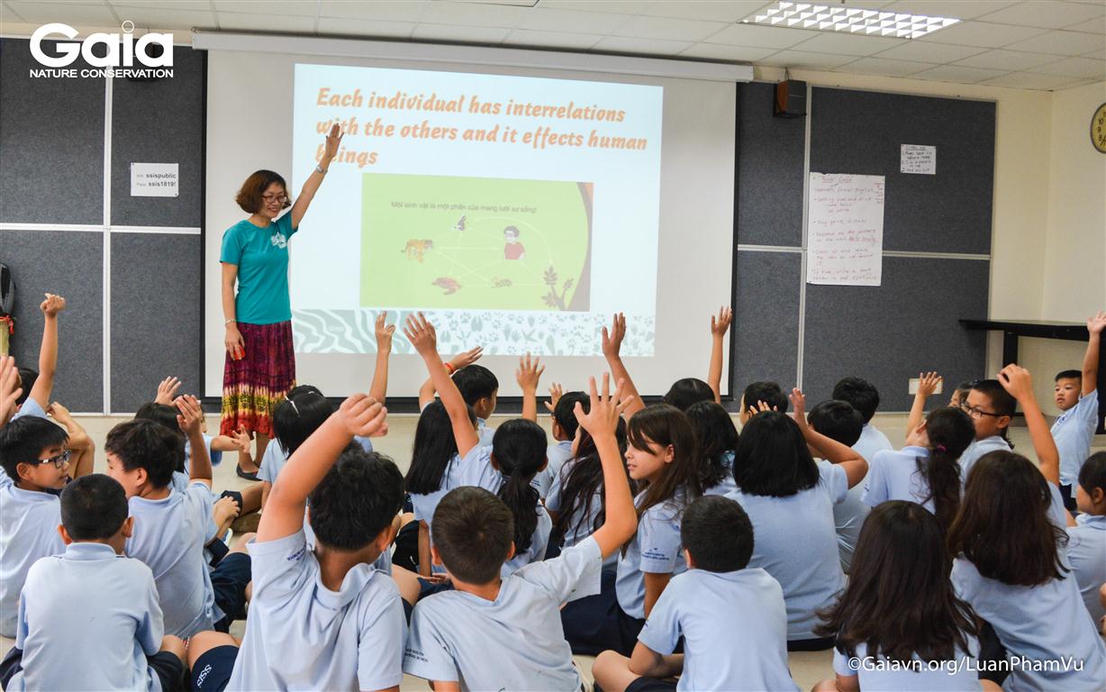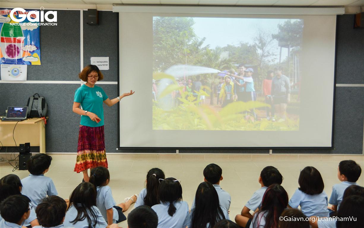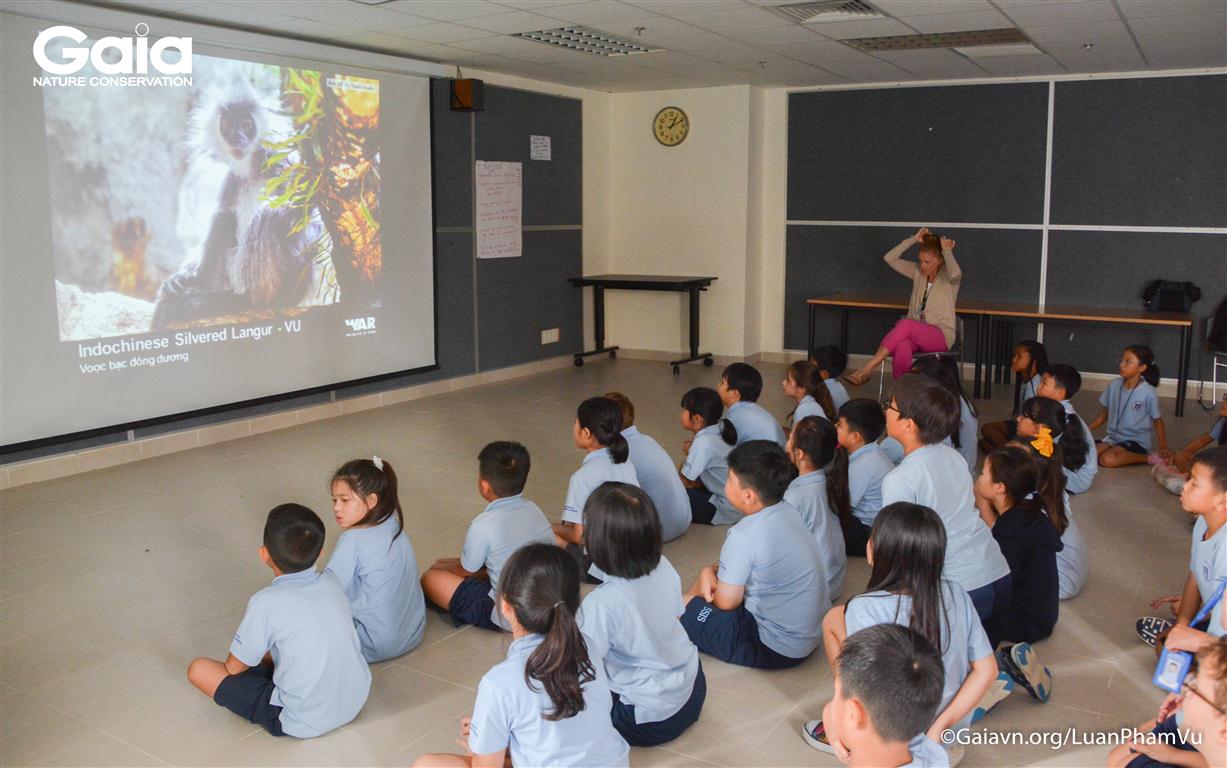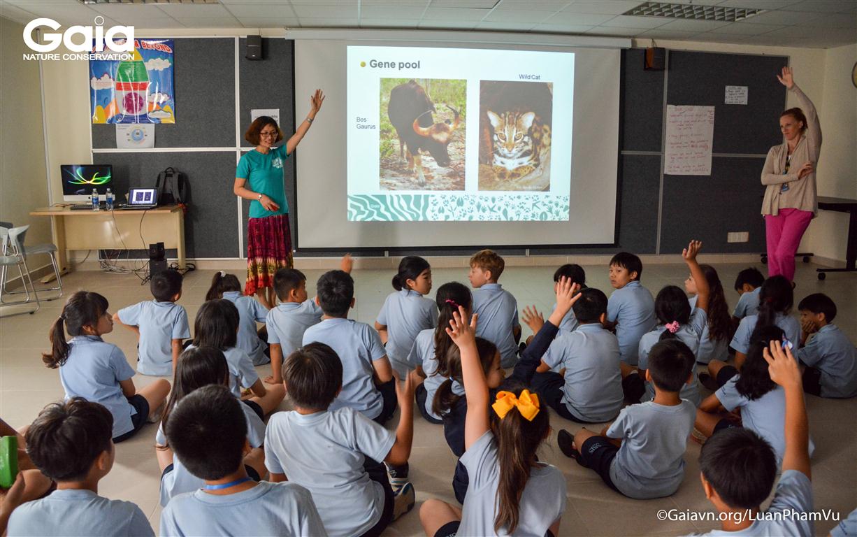 Trò chuyện về bảo tồn thiên nhiên với các em học sinh trường Quốc tế Nam Sài Gòn.