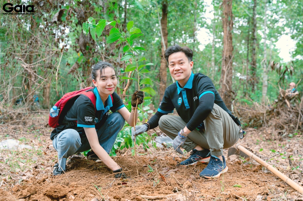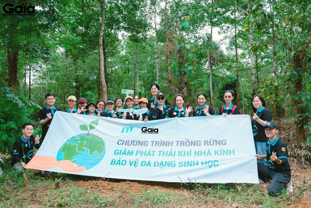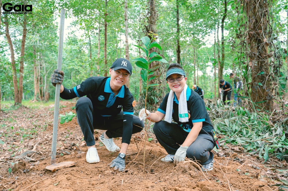 Bà Huyền Đỗ - Nhà sáng lập & Giám đốc Trung tâm Bảo tồn Thiên nhiên Gaia, Ông Orita Yoshiyuki Tổng Giám đốc JTI Việt Nam và Bà Hồ Linh Lan - Giám đốc Đối ngoại và Truyền thông JTI Việt Nam cùng trồng cây khởi động hoạt động trồng rừng JTI Việt Nam tại Đồng Nai