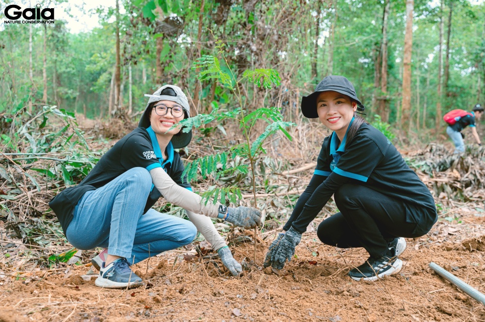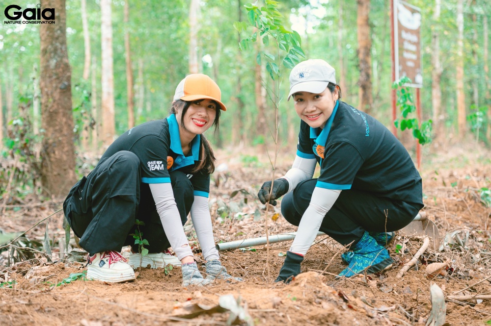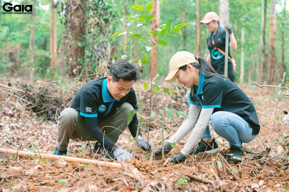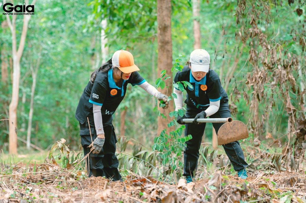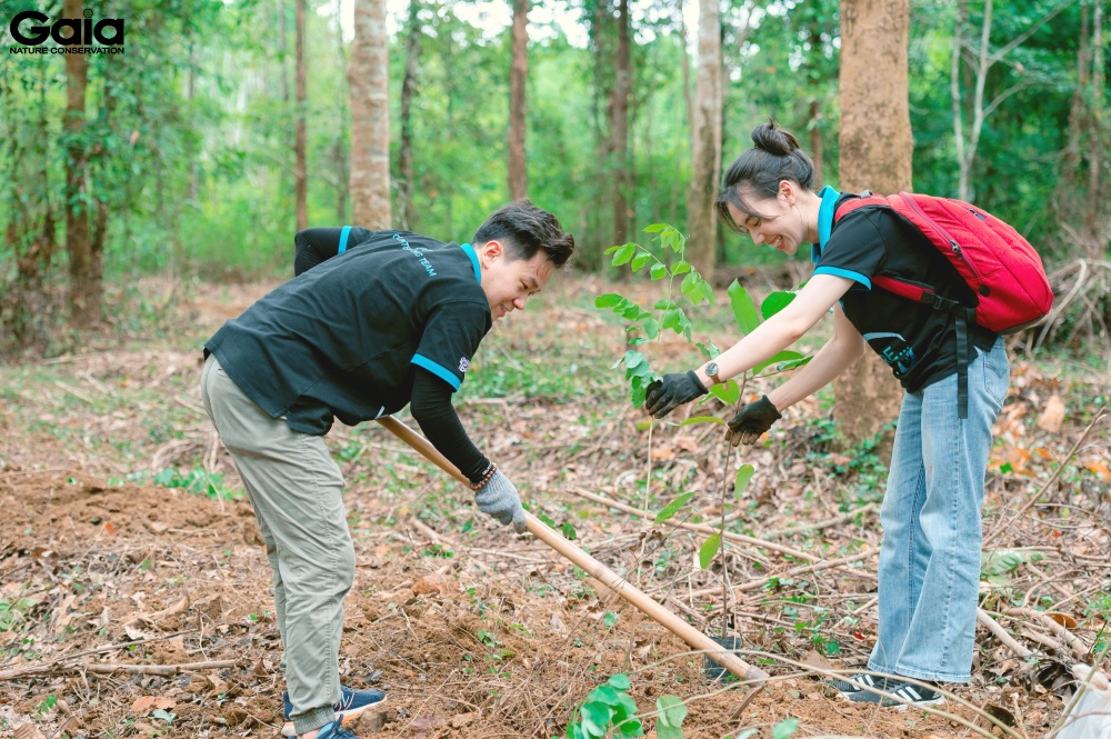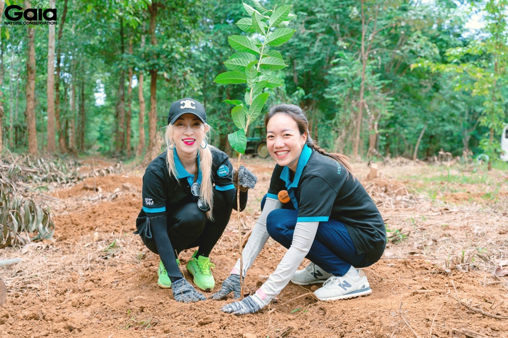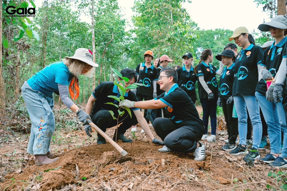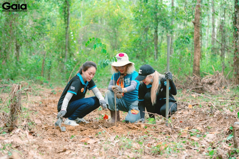 Bà Huyền Đỗ – Nhà sáng lập & Giám đốc Trung Tâm Bảo tồn Thiên nhiên Gaia hướng dẫn trồng rừng