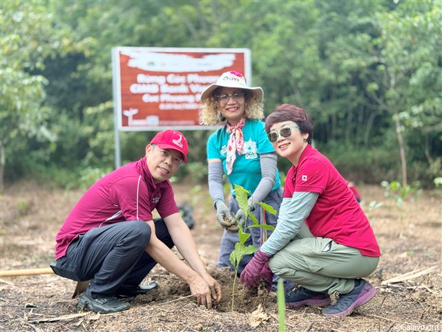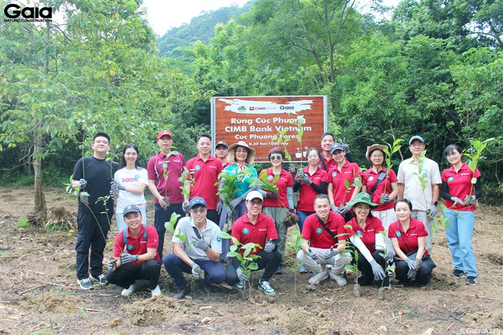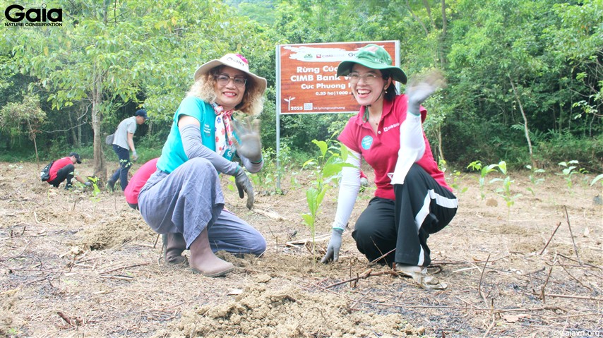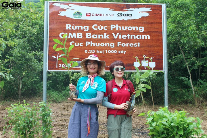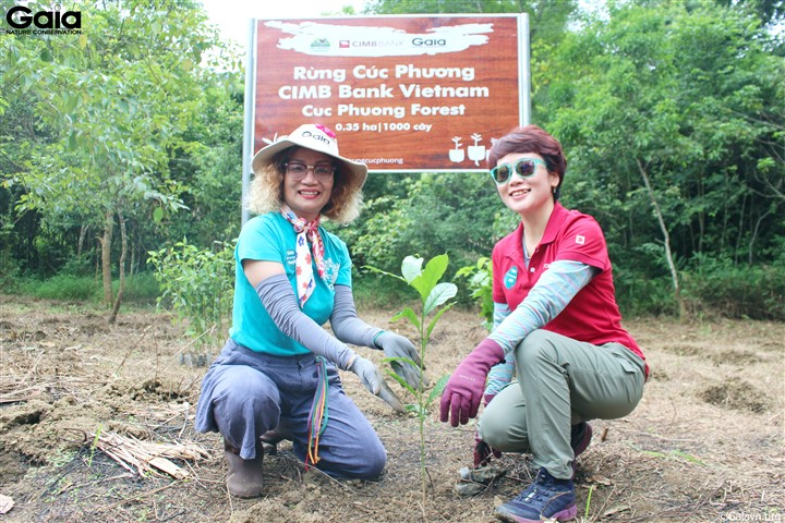 Bà Huyền Đỗ - Nhà sáng lập và Giám đốc Gaia cùng đại diện CIMB Bank cùng trồng cây