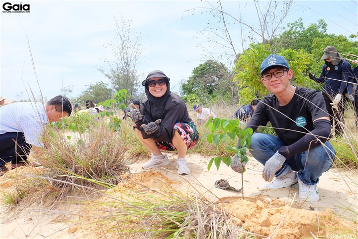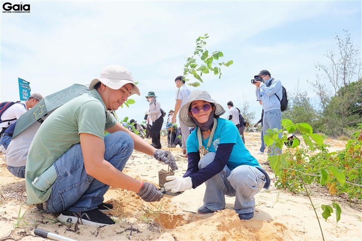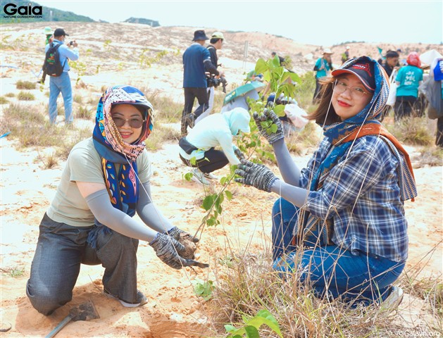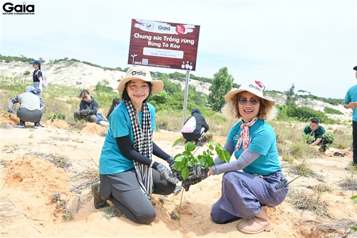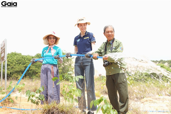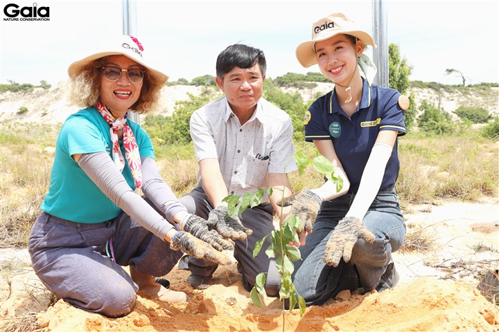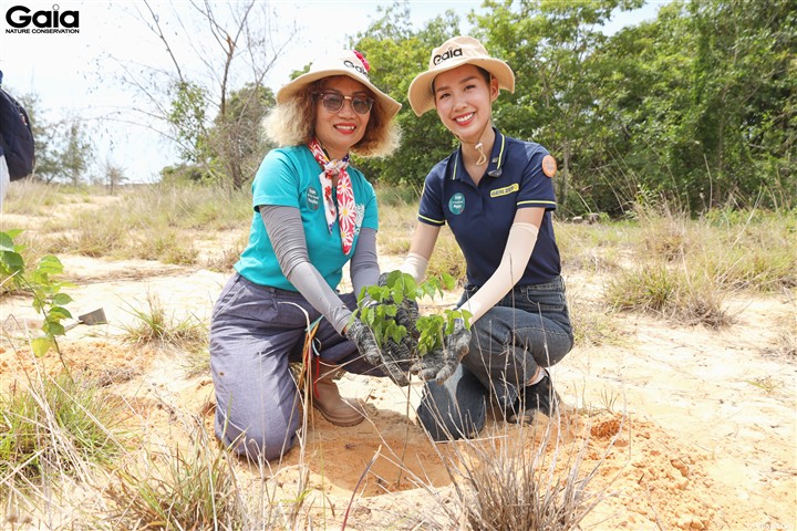 Bà Huyền Đỗ - Nhà Sáng lập & Giám đốc Trung tâm Bảo tồn Thiên nhiên Gaia và Hoa Hậu Lê Nguyễn Bảo Ngọc - Hoa hậu Liên lục địa 2022, Nhà sáng lập Chương trình Gen Zero, Giám đốc Điều hành Miss World Viet Nam 2025 cùng trồng cây Giáng hương