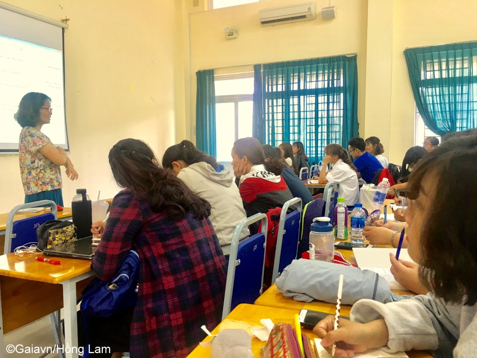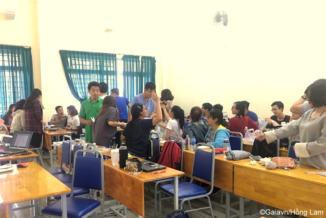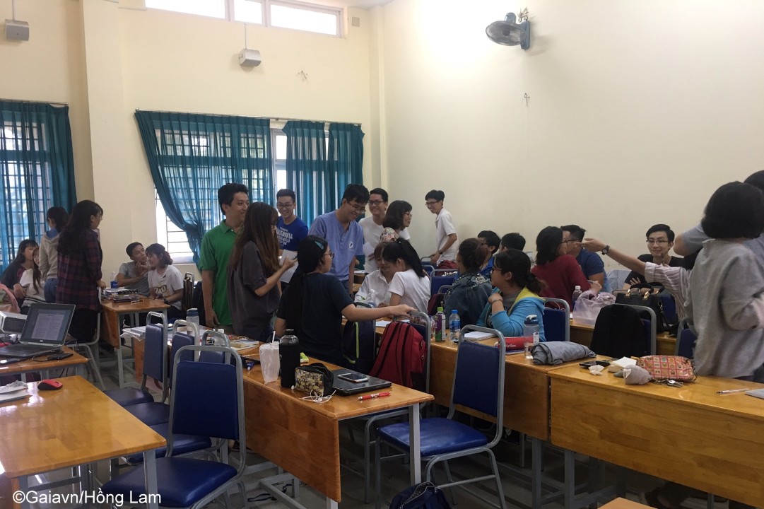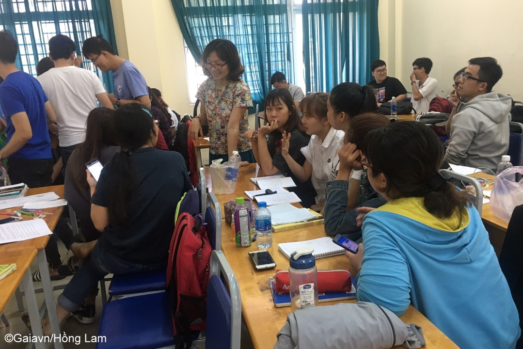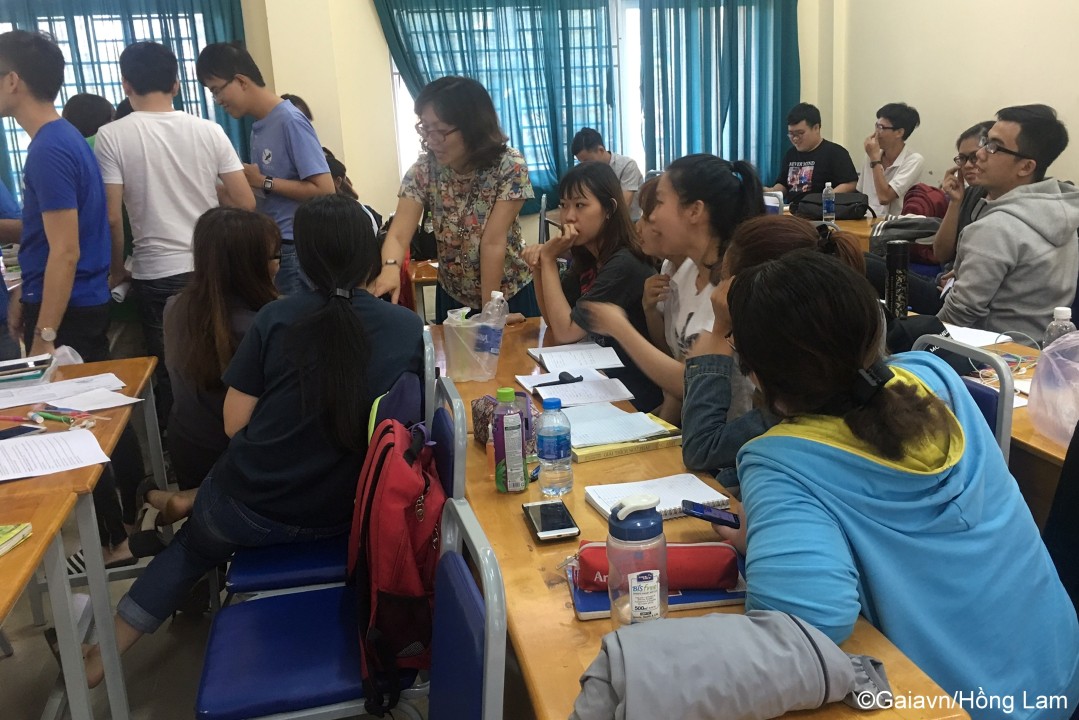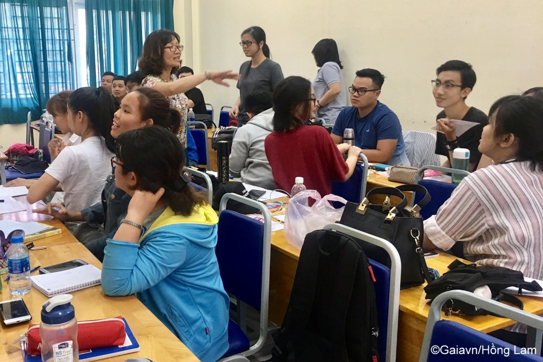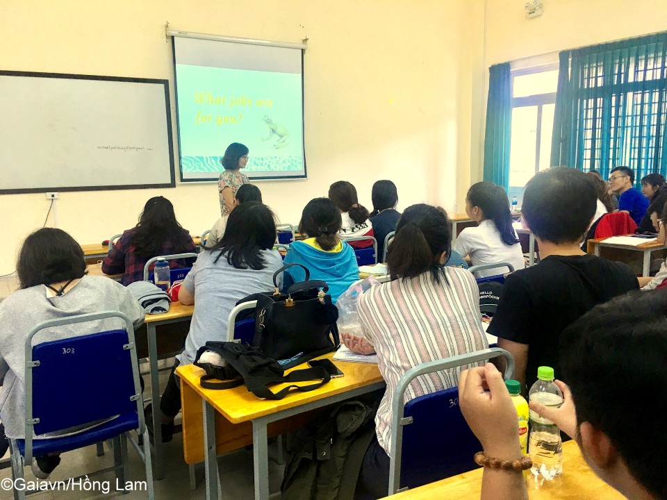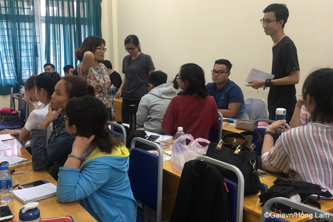 Các bạn sinh viên trao đổi với nhau về các nhóm nghề nghiệp