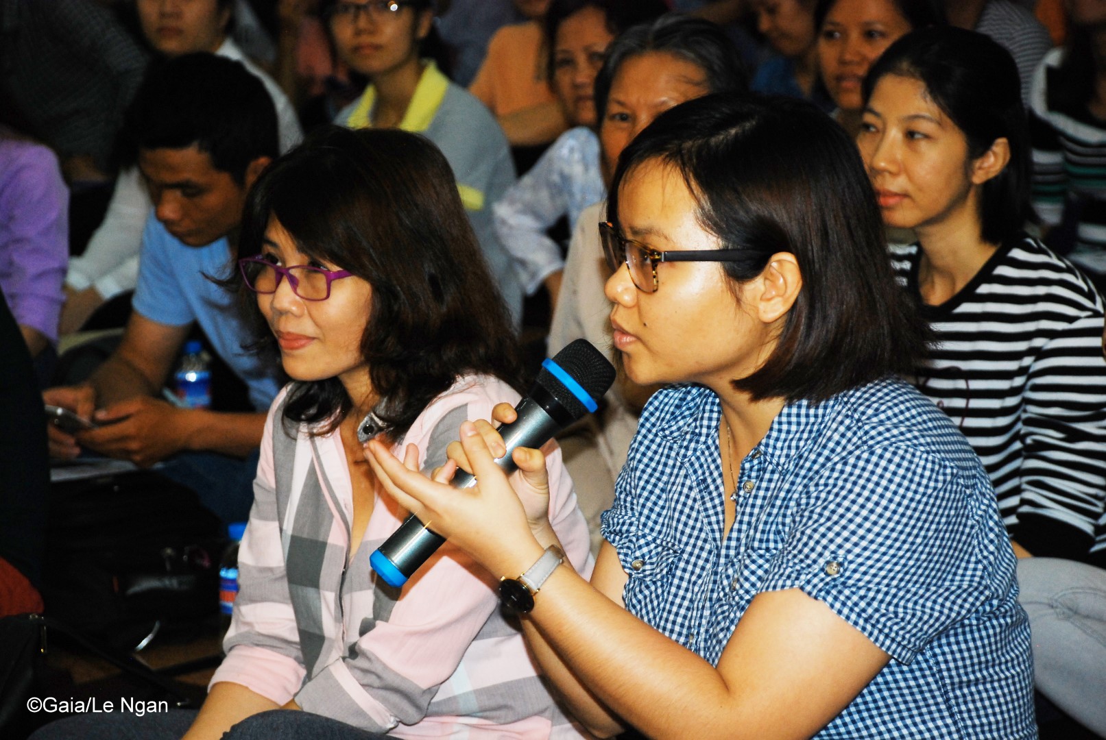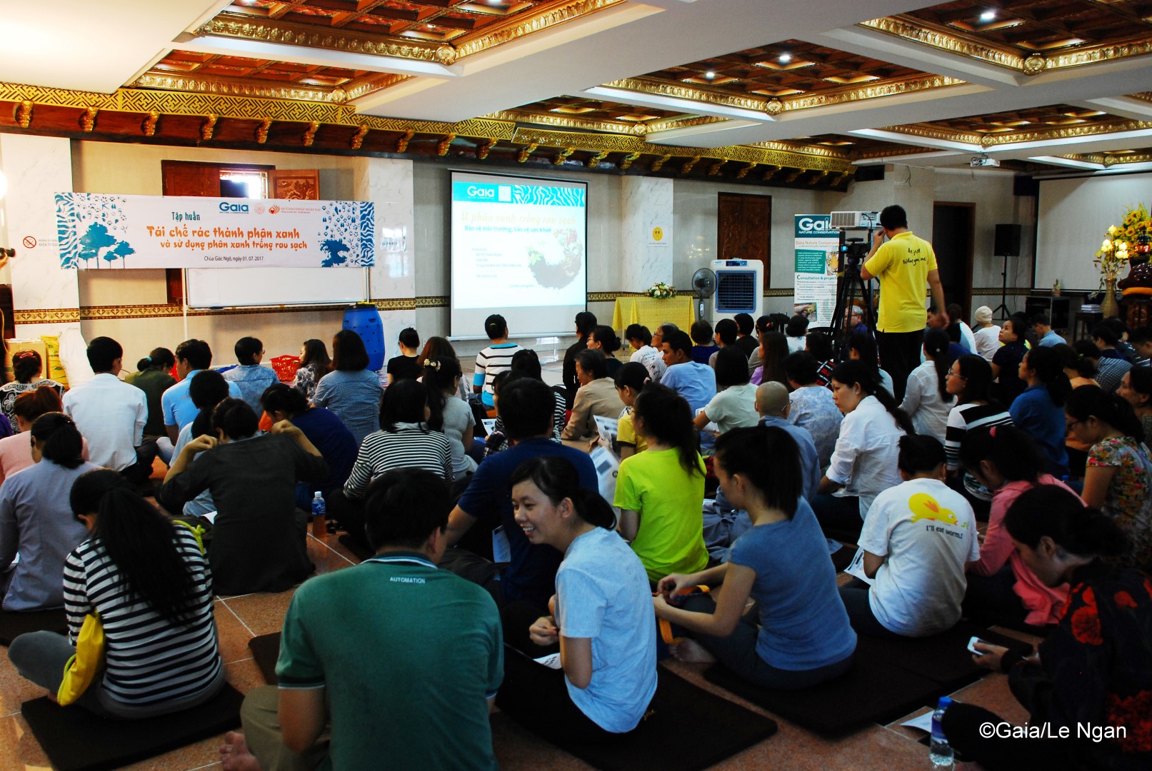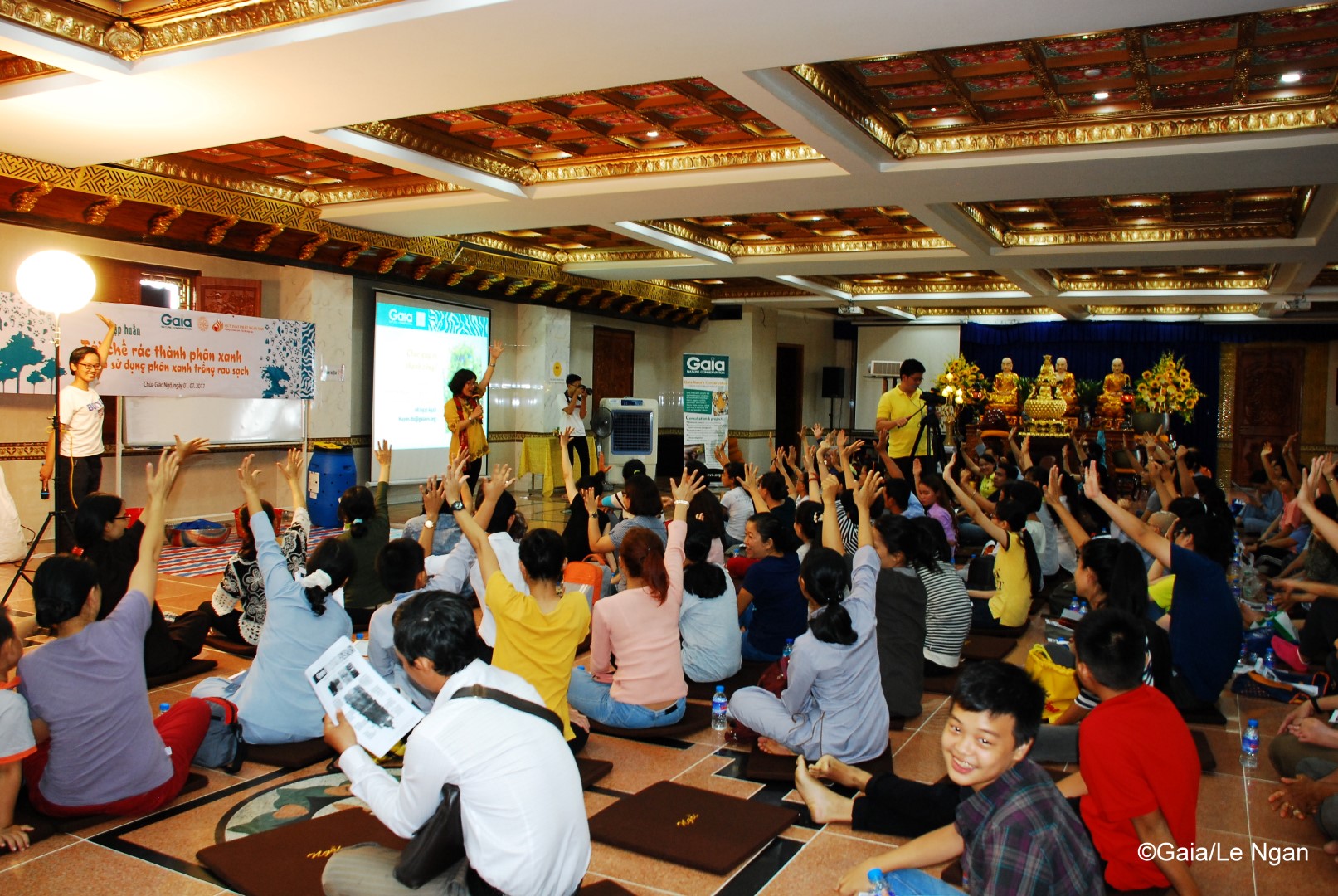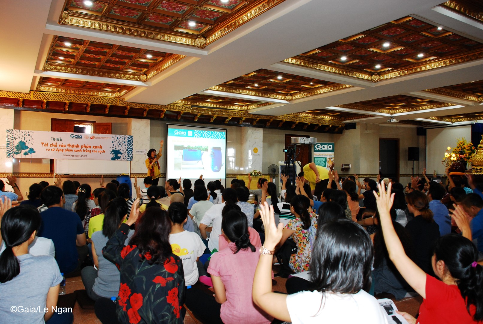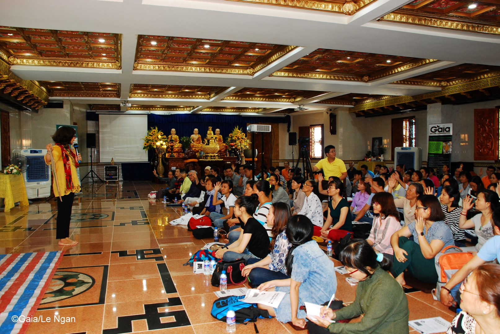 Bà Đỗ Thị Thanh Huyền – Giám đốc Trung tâm Bảo tồn Thiên nhiên Gaia tập huấn cách làm phân xanh và sử dụng phân xanh trồng rau sạch
