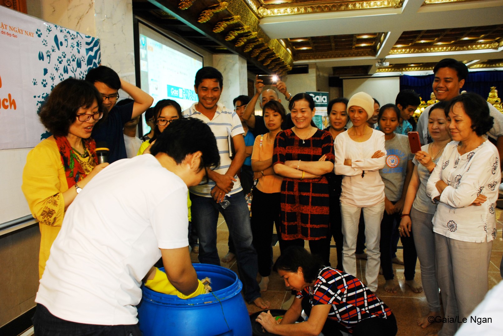 Giới thiệu mẫu thùng ủ phân xanh tự chế bởi các cán bộ Gaia