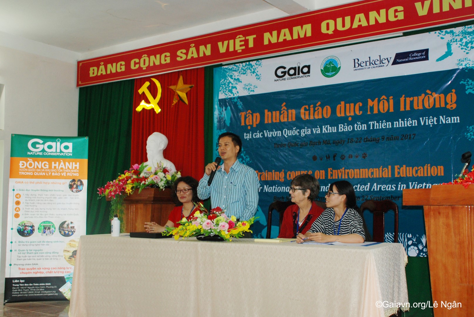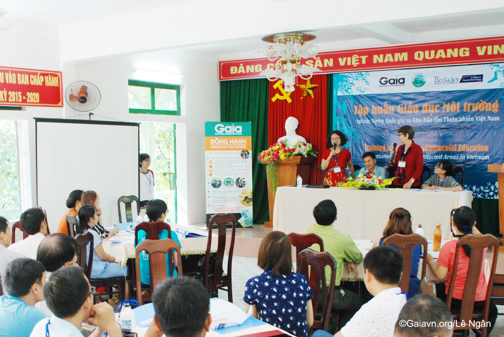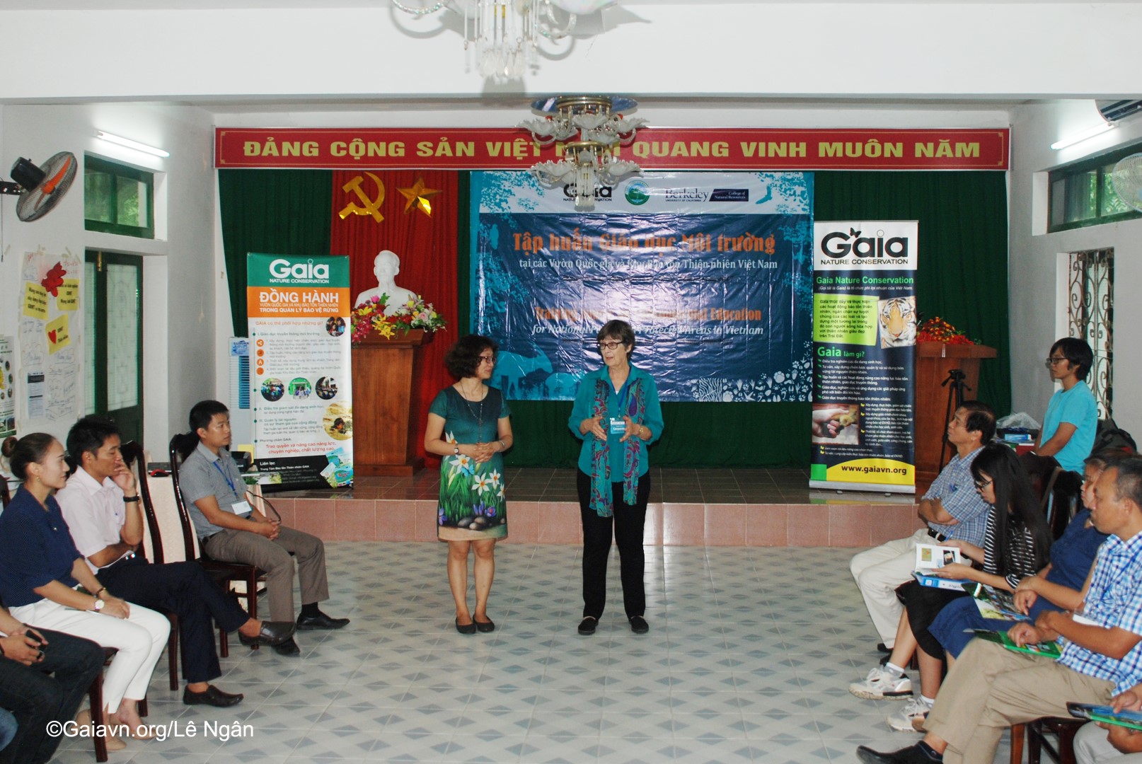 Bà Đỗ Thị Thanh Huyền – Giám đốc Trung tâm Bảo tồn Thiên nhiên Gaia và Bà Susan Lynn Carpenter – Giảng viên Trường Đại học Carlifornia, Berkeley, Mỹ, phát biểu khai mạc Tập huấn