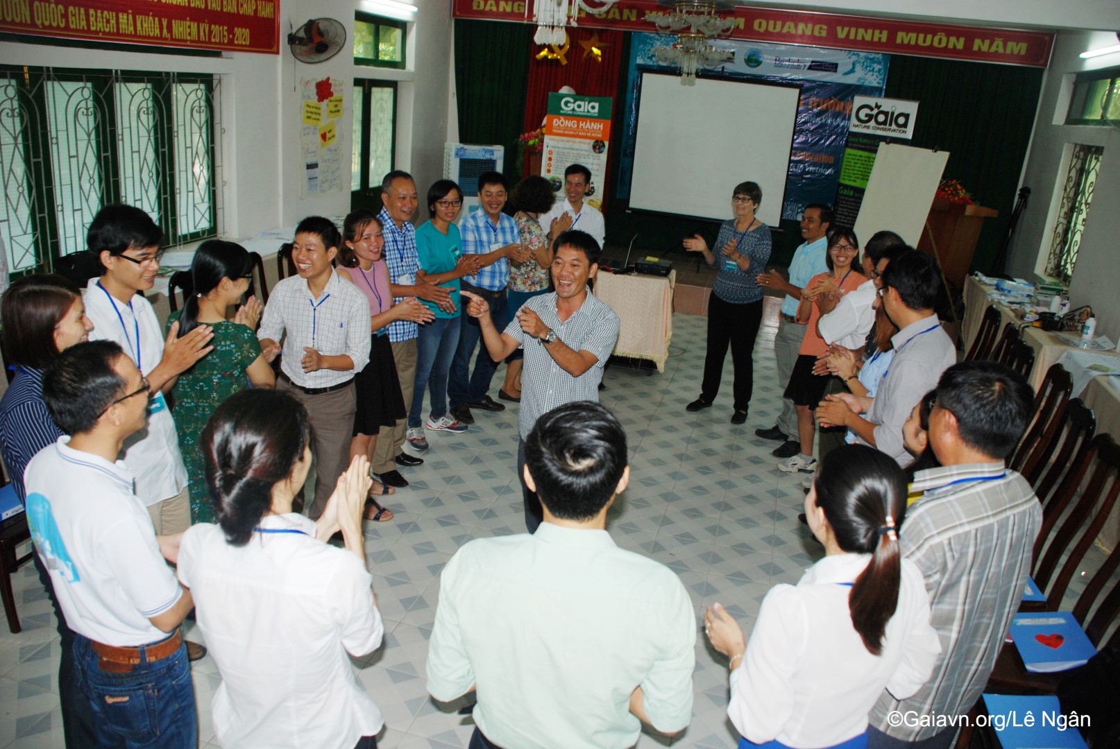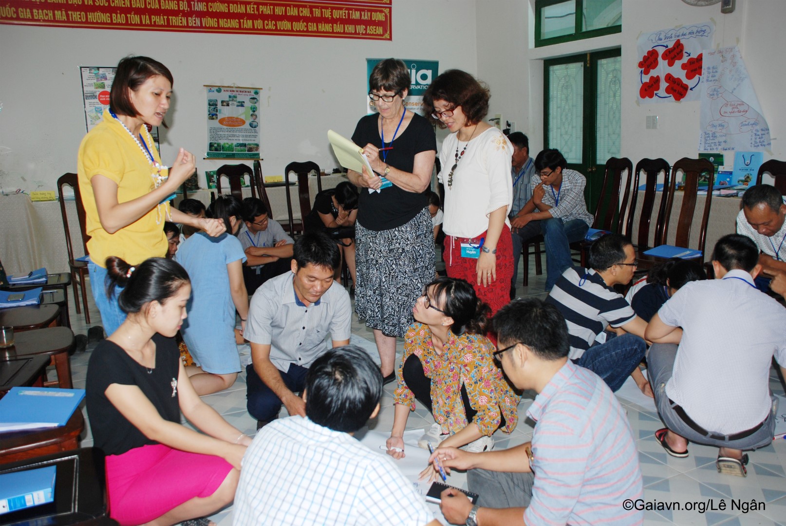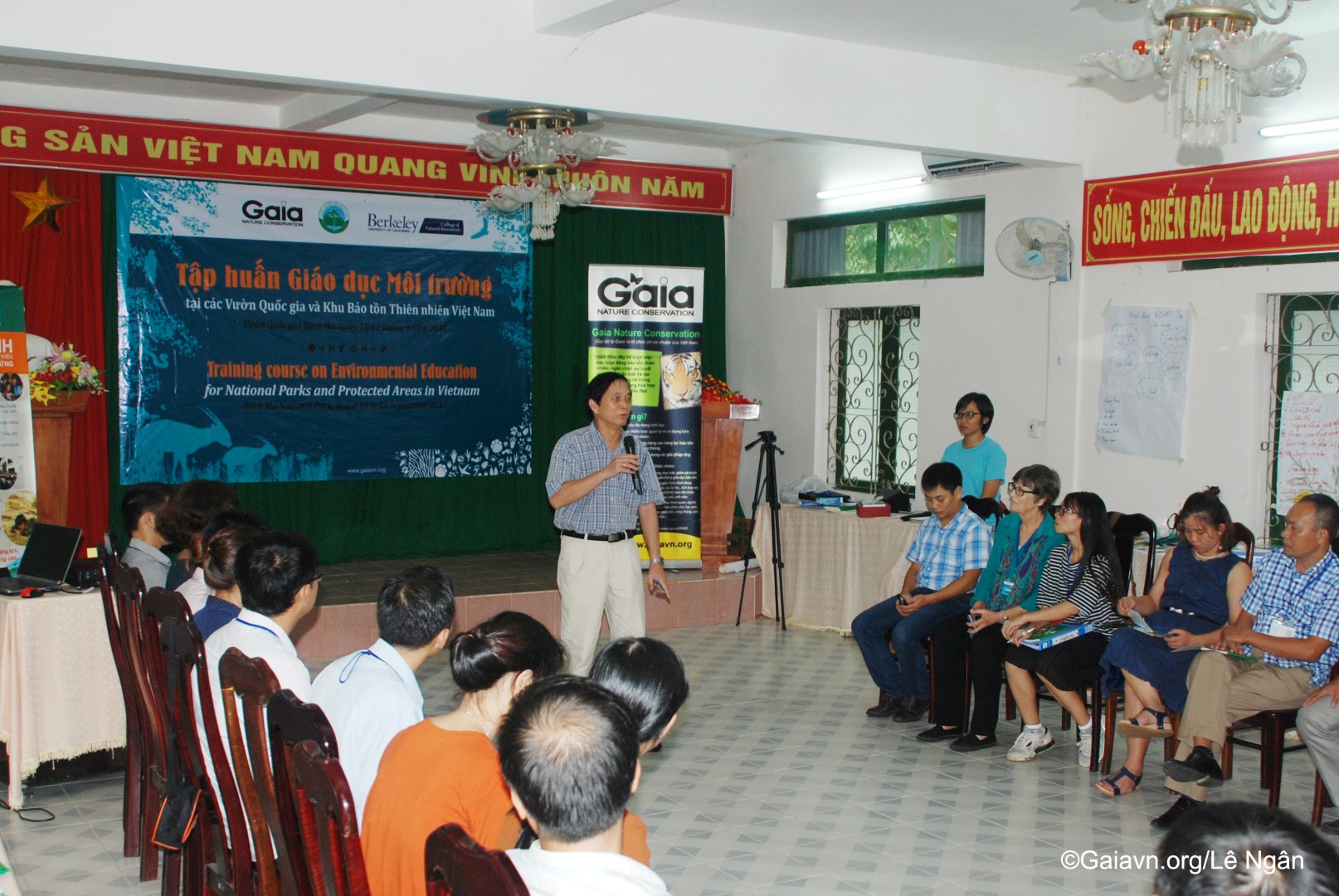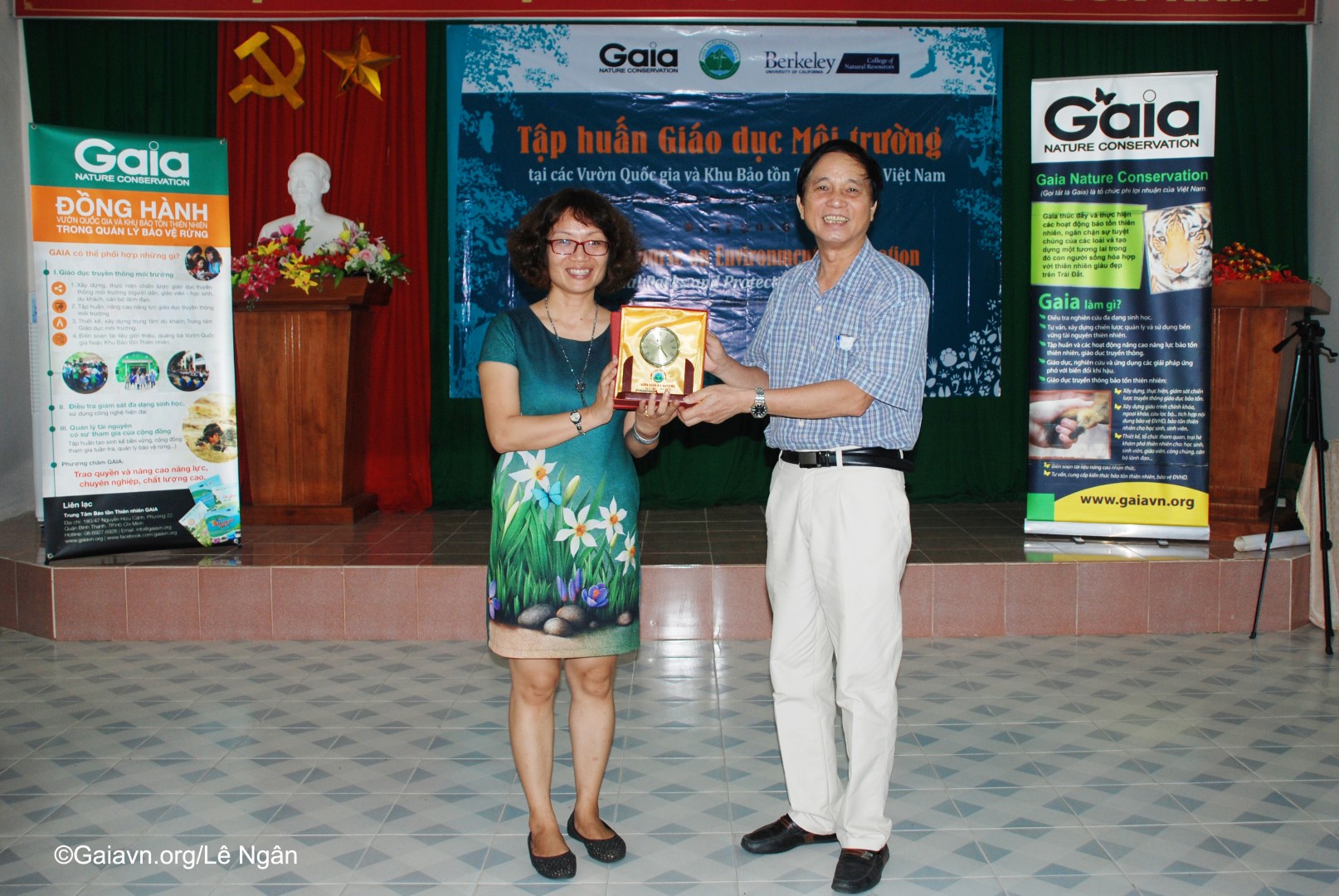 Bà Đỗ Thị Thanh Huyền – Giám đốc Trung tâm Bảo tồn Thiên nhiên Gaia và Bà Susan Lynn Carpenter – Giảng viên Trường Đại học Carlifornia, Berkeley, Mỹ, phát biểu khai mạc Tập huấn