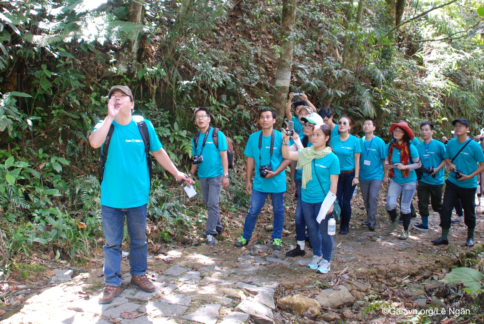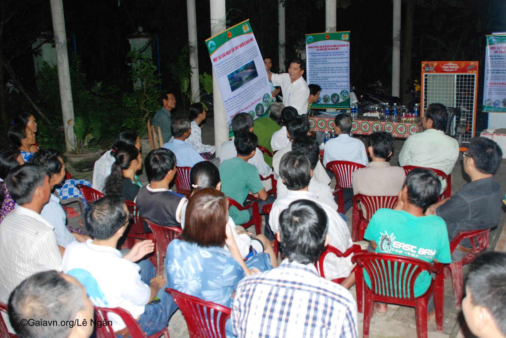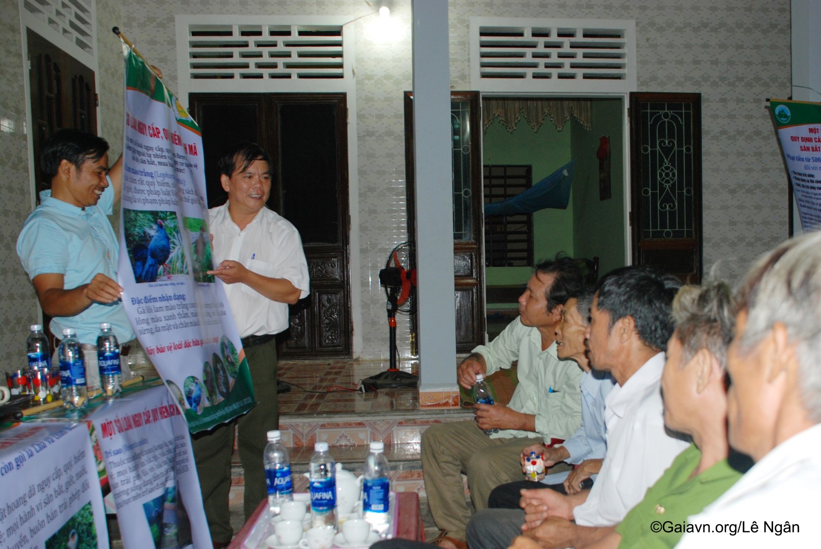 Vua chim, Ông Trương Cảm – Phó Giám đốc Trung tâm Giáo dục Môi trường và Dịch vụ-Vườn Quốc Gia Bạch Mã, nói chuyện với người dân về bảo vệ chim rừng.