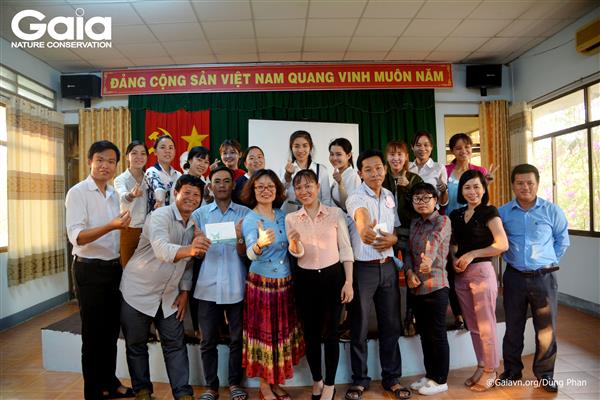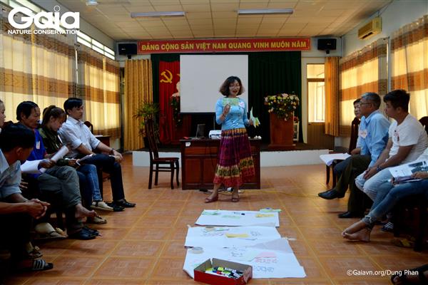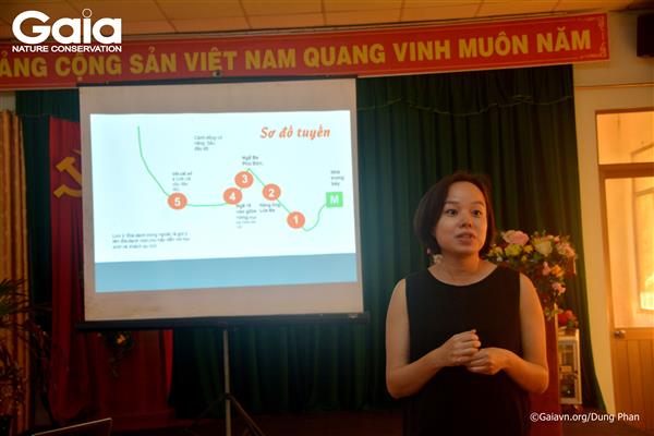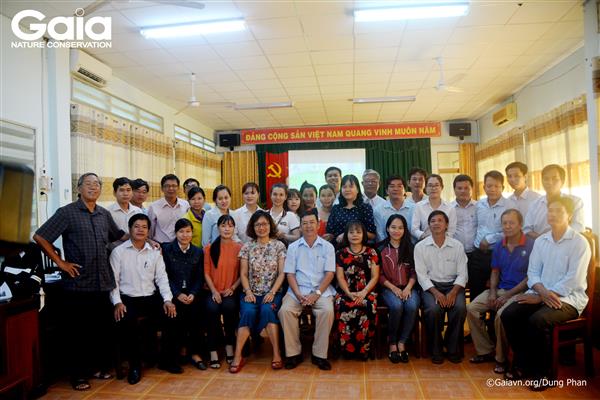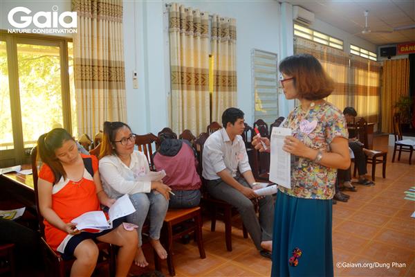 Bà Đỗ Thị Thanh Huyền - Nhà sáng lập & Giám đốc Trung tâm Bảo tồn thiên nhiên Gaia (áo đỏ) thảo luận xây dựng chương trình Kỳ thú Tràm Chim với cán bộ Vườn Quốc gia Tràm Chim.