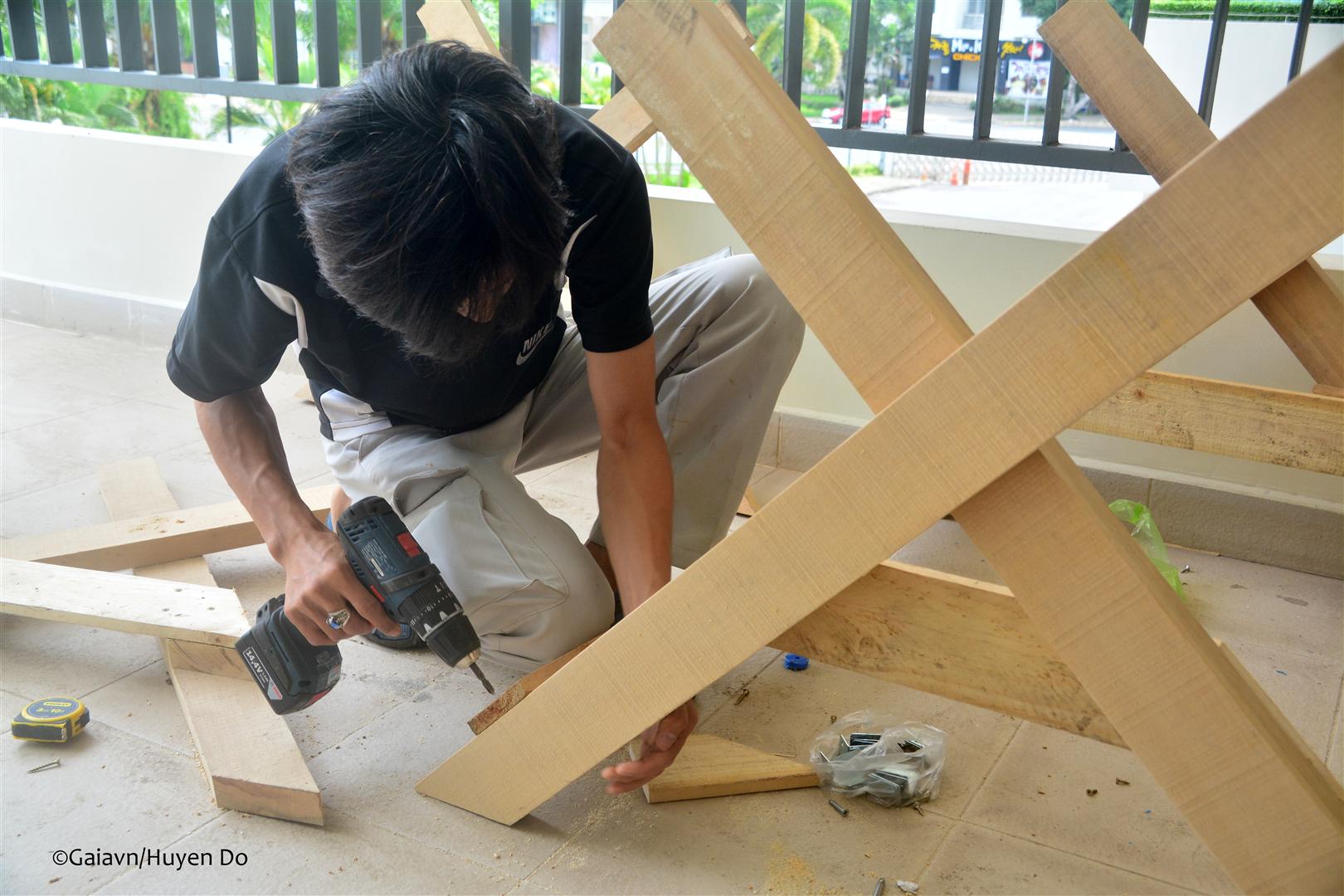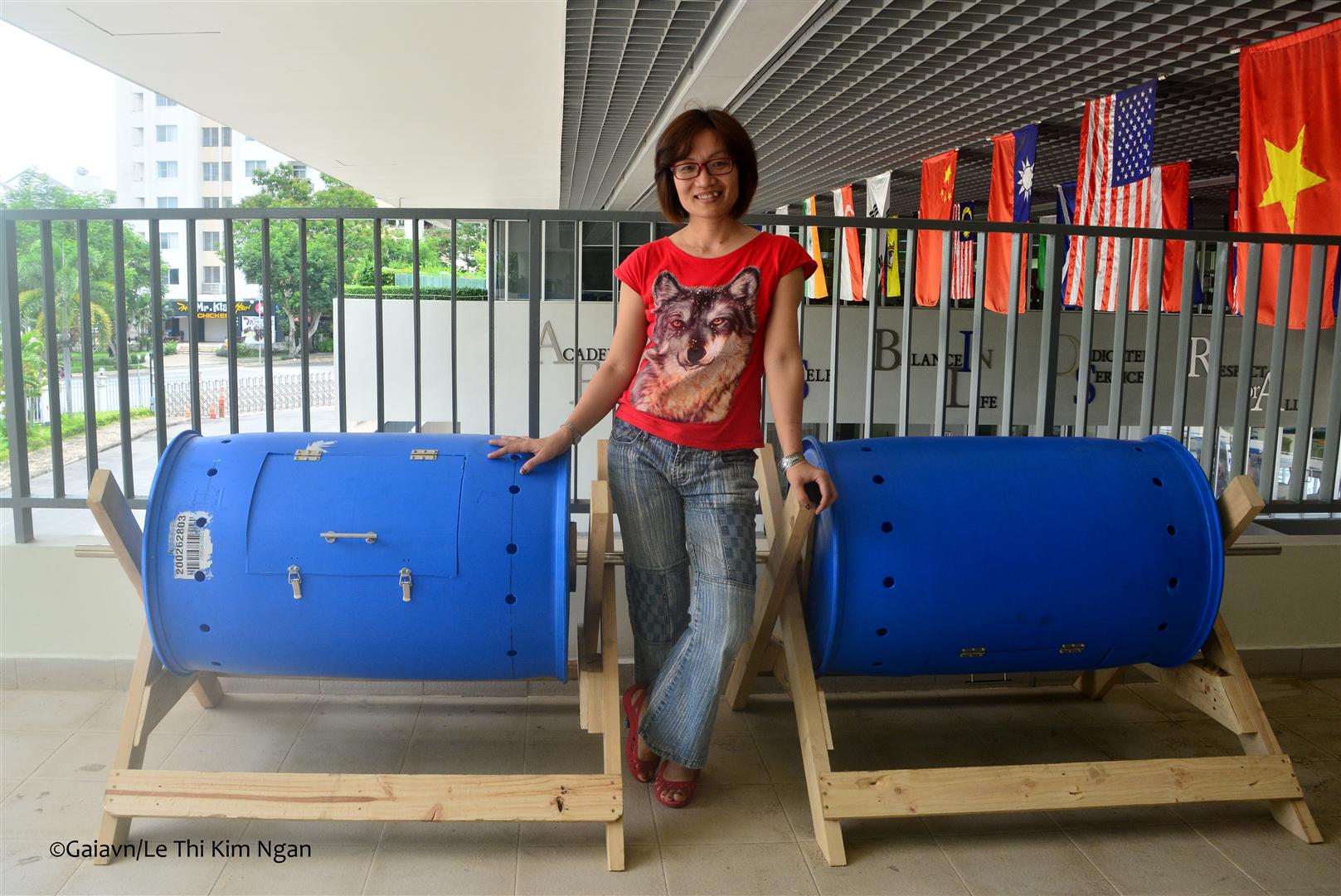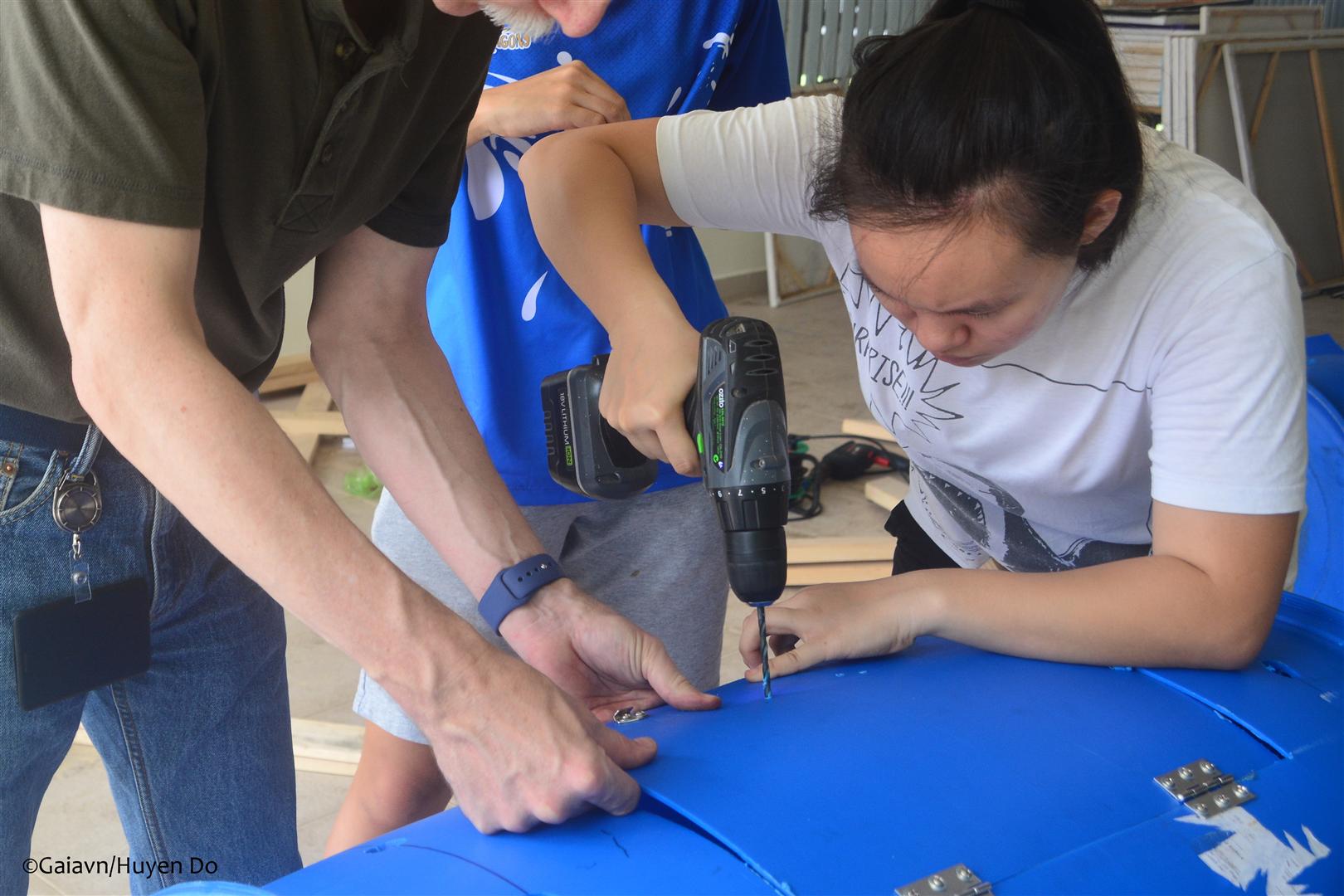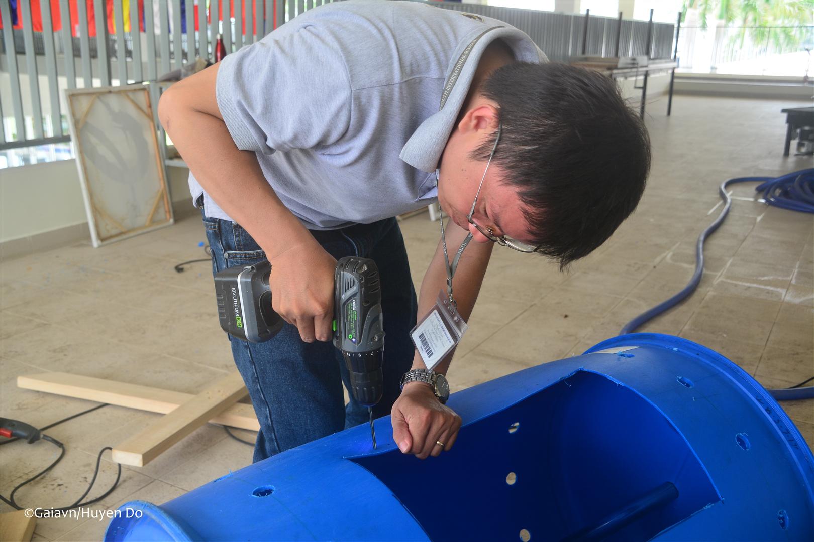 Học sinh trường Quốc tế Nam Sài Gòn đang nghe hướng dẫn chế tạo thùng compost