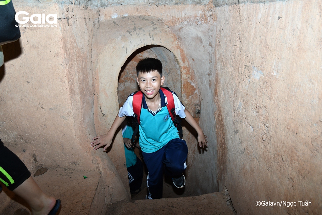 Học sinh thích thú chui hầm địa đạo