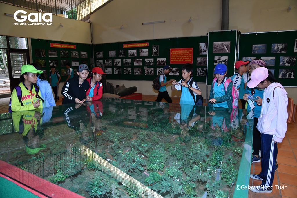 Học sinh tham quan nhà trưng bày Căn cứ Khu ủy miền Đông Nam Bộ (Chiến khu D)