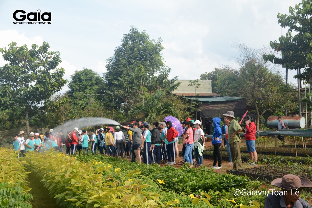Học sinh tưới cây tại Vườn ươm